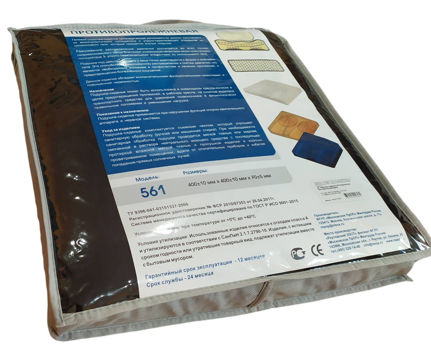 Подушка противопролежневая Реутовский завод, для инвалидных колясок, гелевая, 40x40 см, до 120 кг