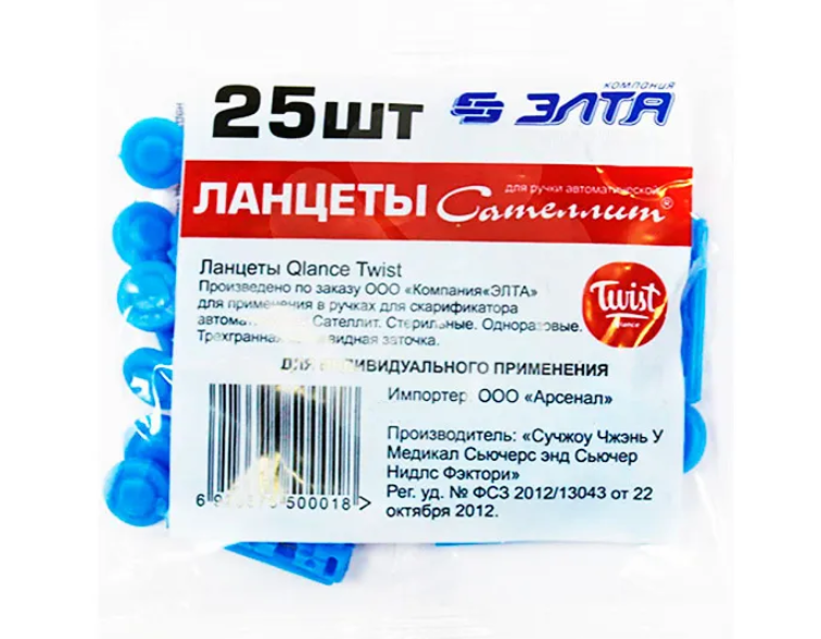 Купить Устройство для прокалывания "Сателлит" + Ланцеты "Qlance Twist" 28G, №25