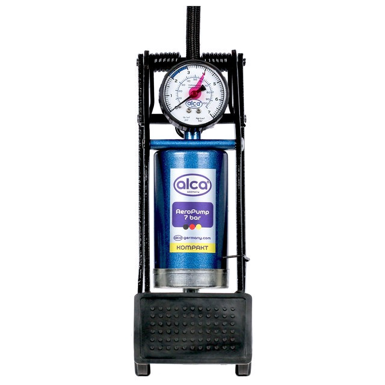ALCA 201200 Насос ножной одноцилиндровый, компактный, шланг 60 см,4 адаптера, ALCA