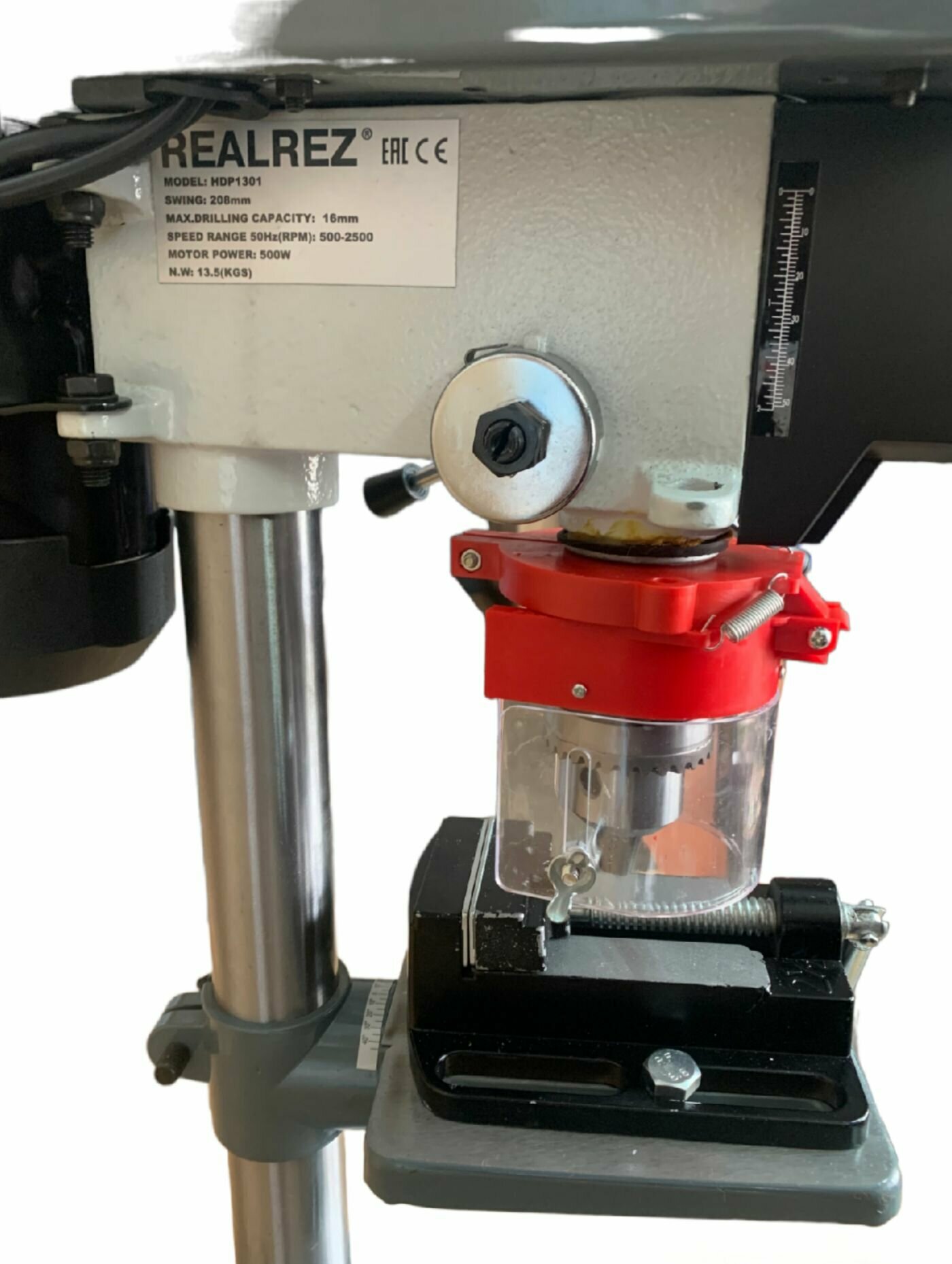 Вертикально-сверлильный станок REALREZ HDP 1301, 500Вт / D16мм / 5скор. / 220В, с тисками интересное: