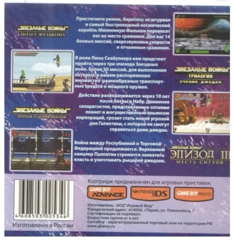 Купить 4в1 Star Wars: Falcon/At. Clones/Revenge of the Sith/Apprentice of the Force (GBA) (Platinum) (256M)