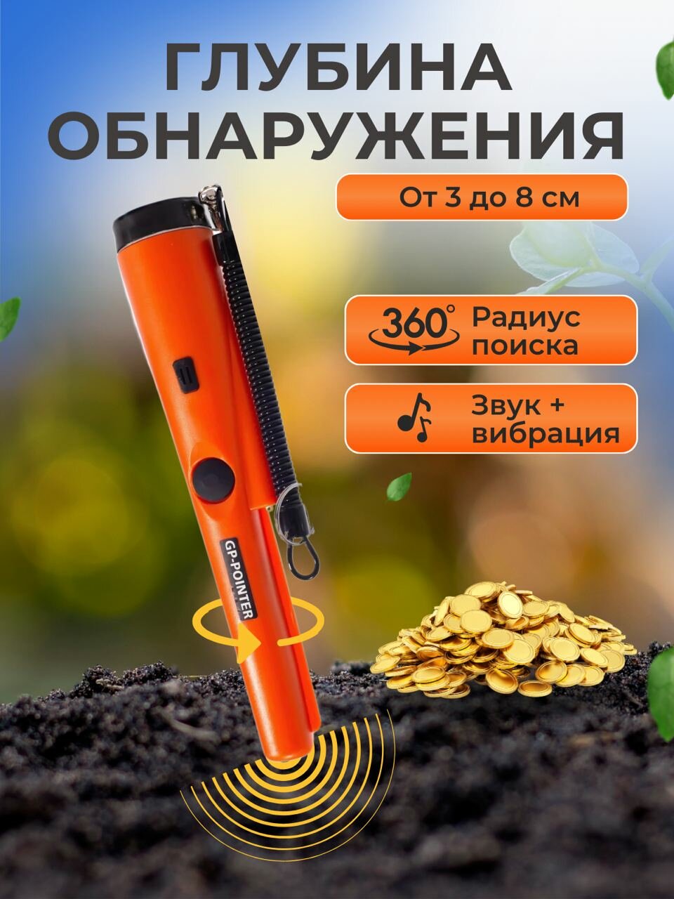 Ручной пинпоинтер металлоискатель GP-Pointer интересное: