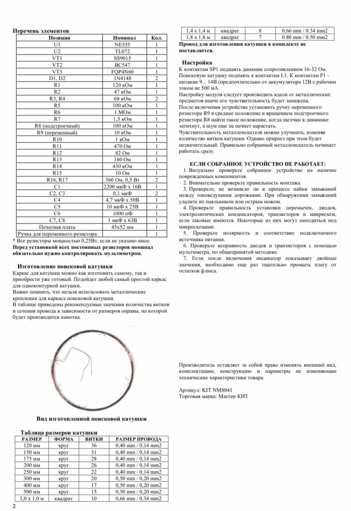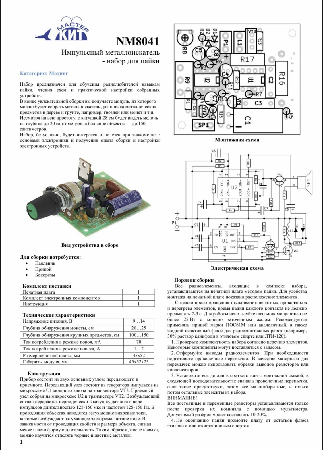 Набор для пайки и сборки - Импульсный металлоискатель, NM8041 Мастер Кит интересное: