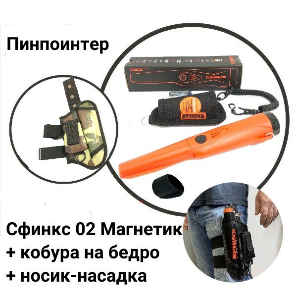 Пинпоинтер Сфинкс 02 (Sphinx) Magnetic оранжевый с кобурой на бедро в комплекте (комуфляж) с носиком-насадкой