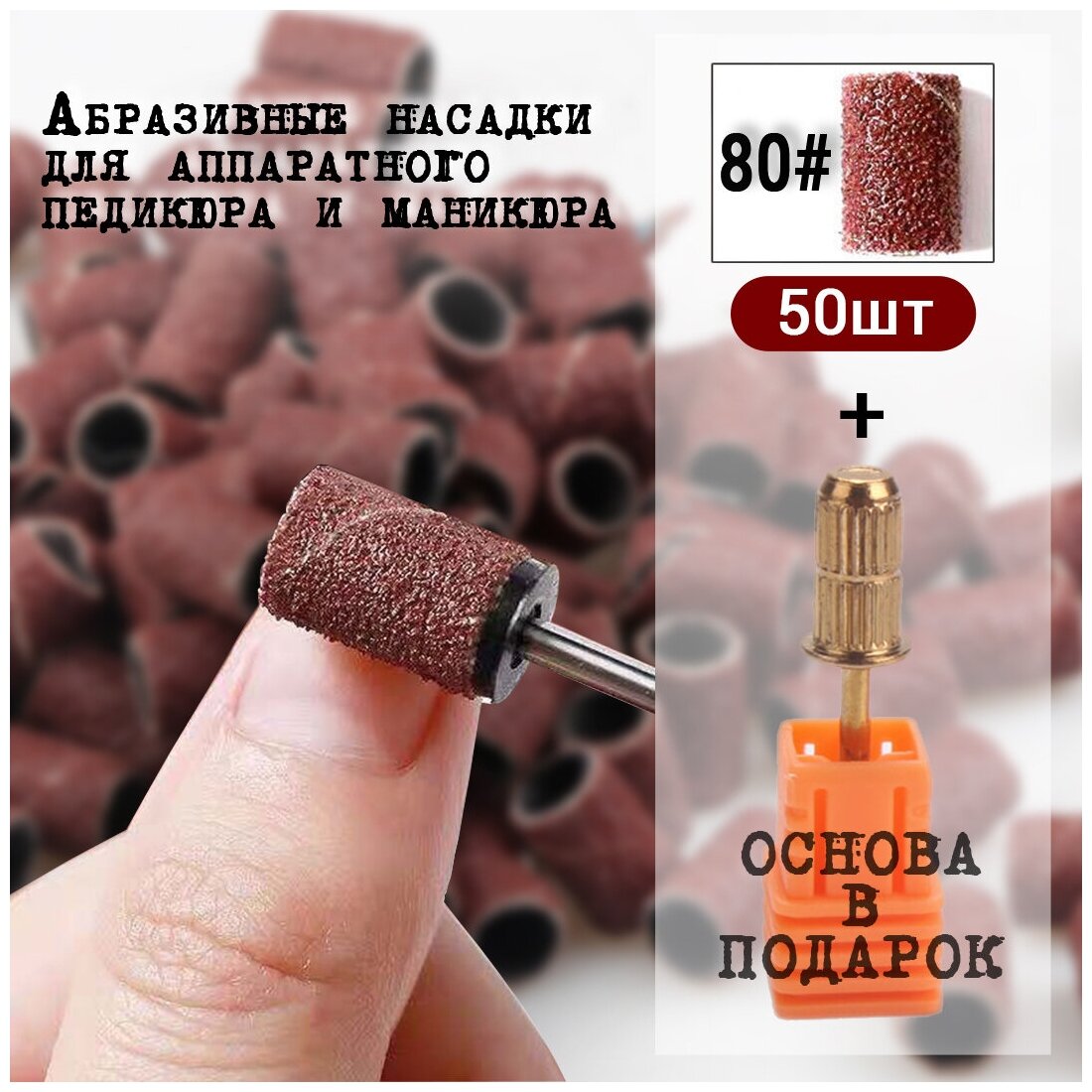 Насадки абразивные шлифовальные для аппаратного педикюра и маникюра, 80 Грит / 50шт. + Основа в подарок интересное: