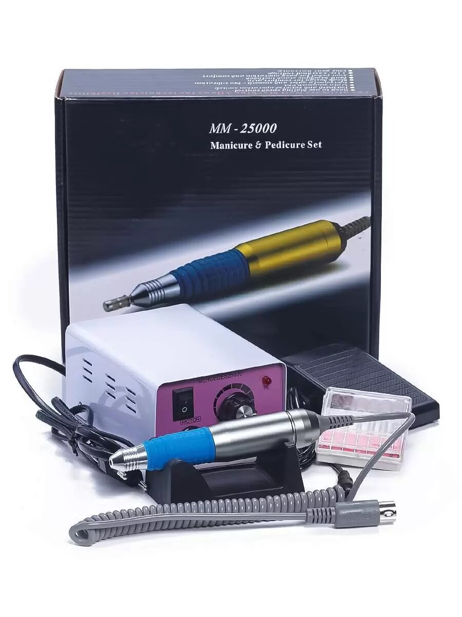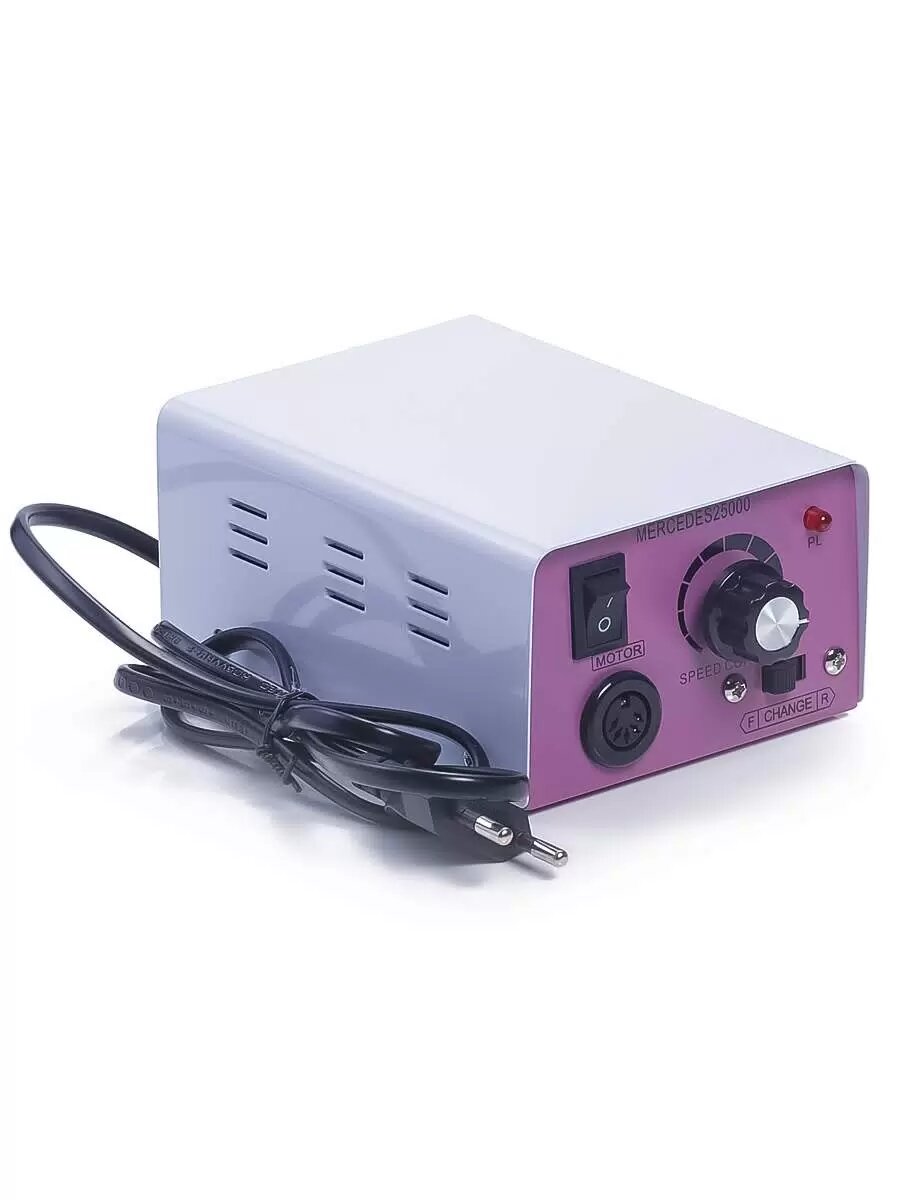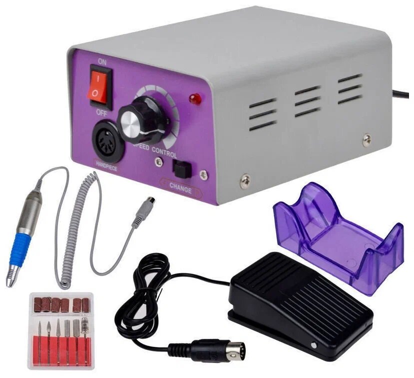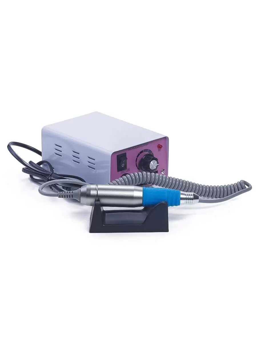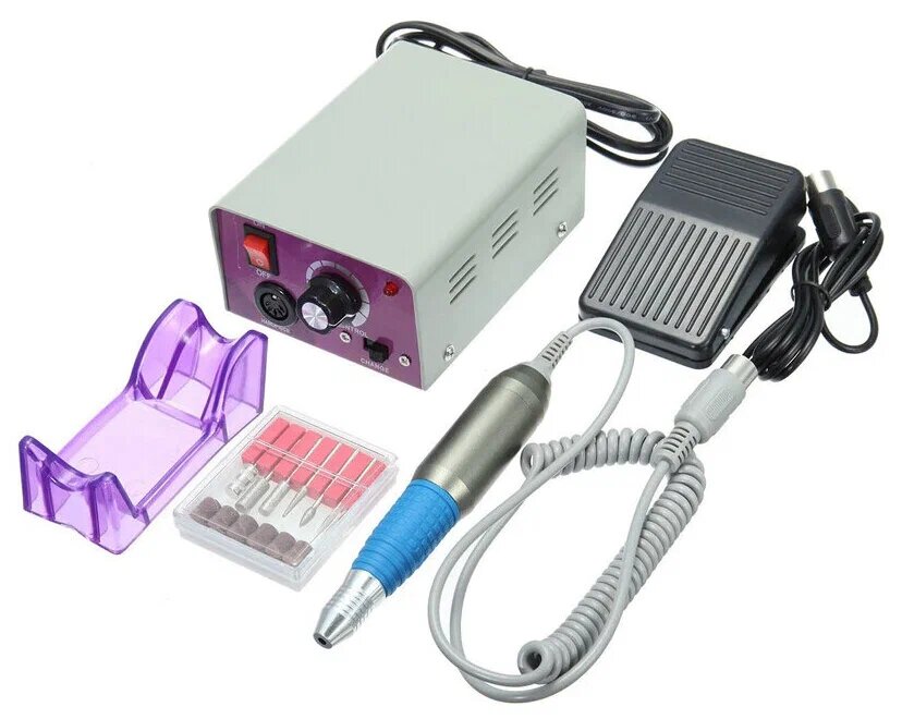 | Дополнительная информация | Данная модель фрезера для ногтей имеет двойной привод: ручной и педальный.В комплект входит педаль (позволяет только включить и выключить аппарат). Также на блоке питания расположен переключатель, с помощью которого можно изменить направление вращения насадки, - реверс (вперед и назад). Данная функция облегчает работу мастера, поскольку позволяет быстро изменять направление вращения насадок, не меняя удобного положения.В комплект также входит подставка под ручку |