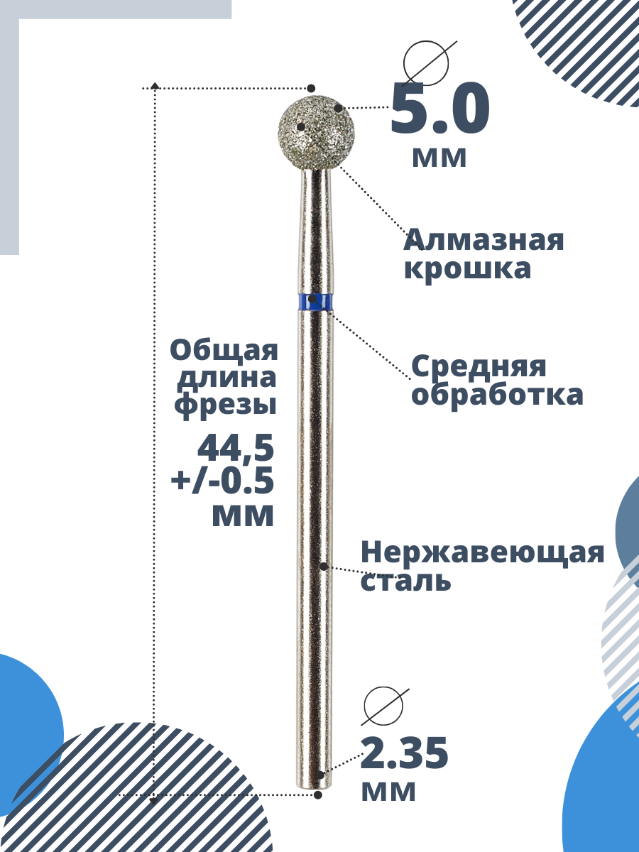 Купить Astial / Фреза для маникюра и педикюра алмазная средняя синяя Шар Сфера Набор для кутикулы 5 шт