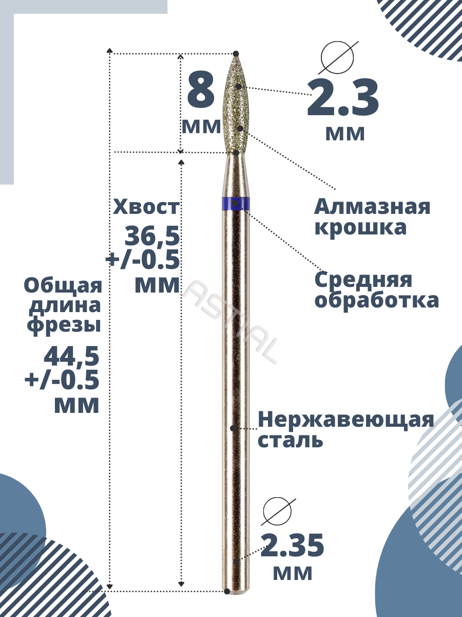 Astial / Фреза для маникюра и педикюра алмазная средняя синяя Пламя с острым кончиком Набор для кутикулы 1 шт
