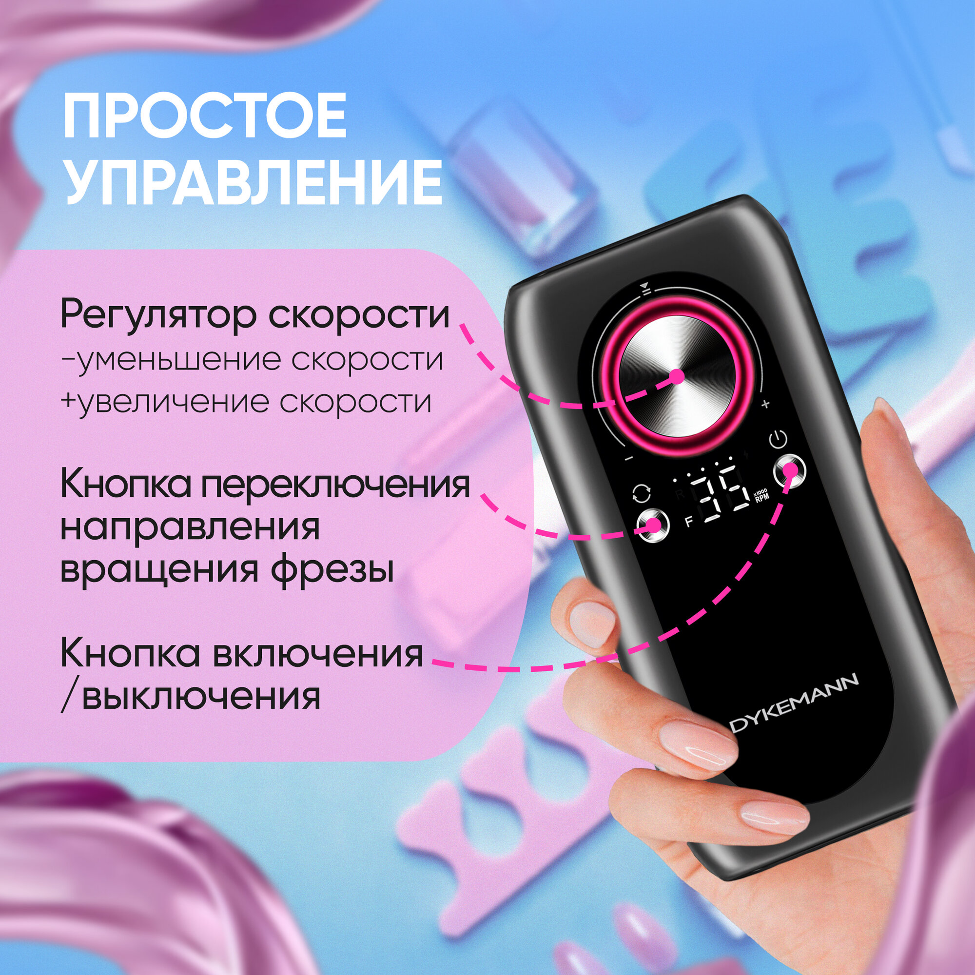 Портативный аппарат для маникюра и педикюра Dykemann Nagel M44 / Машинка маникюрная / Фрезер / Профессиональный электрический маникюрный аппарат интересное: