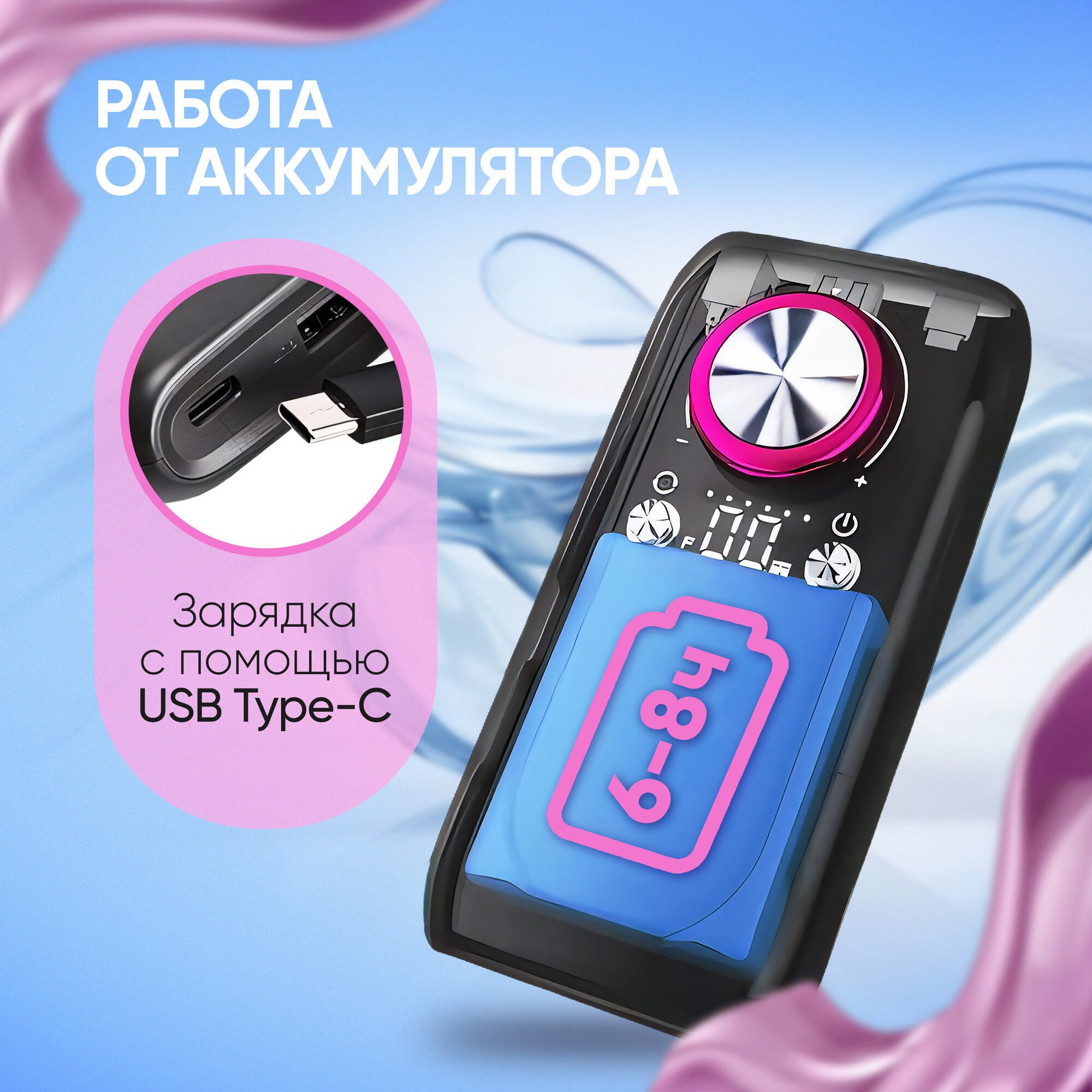 Мощный для домашнего маникюра. Можно использовать для профессионального маникюра. Можно использовать как Пауэр банк Компактный, можно брать с собой. |