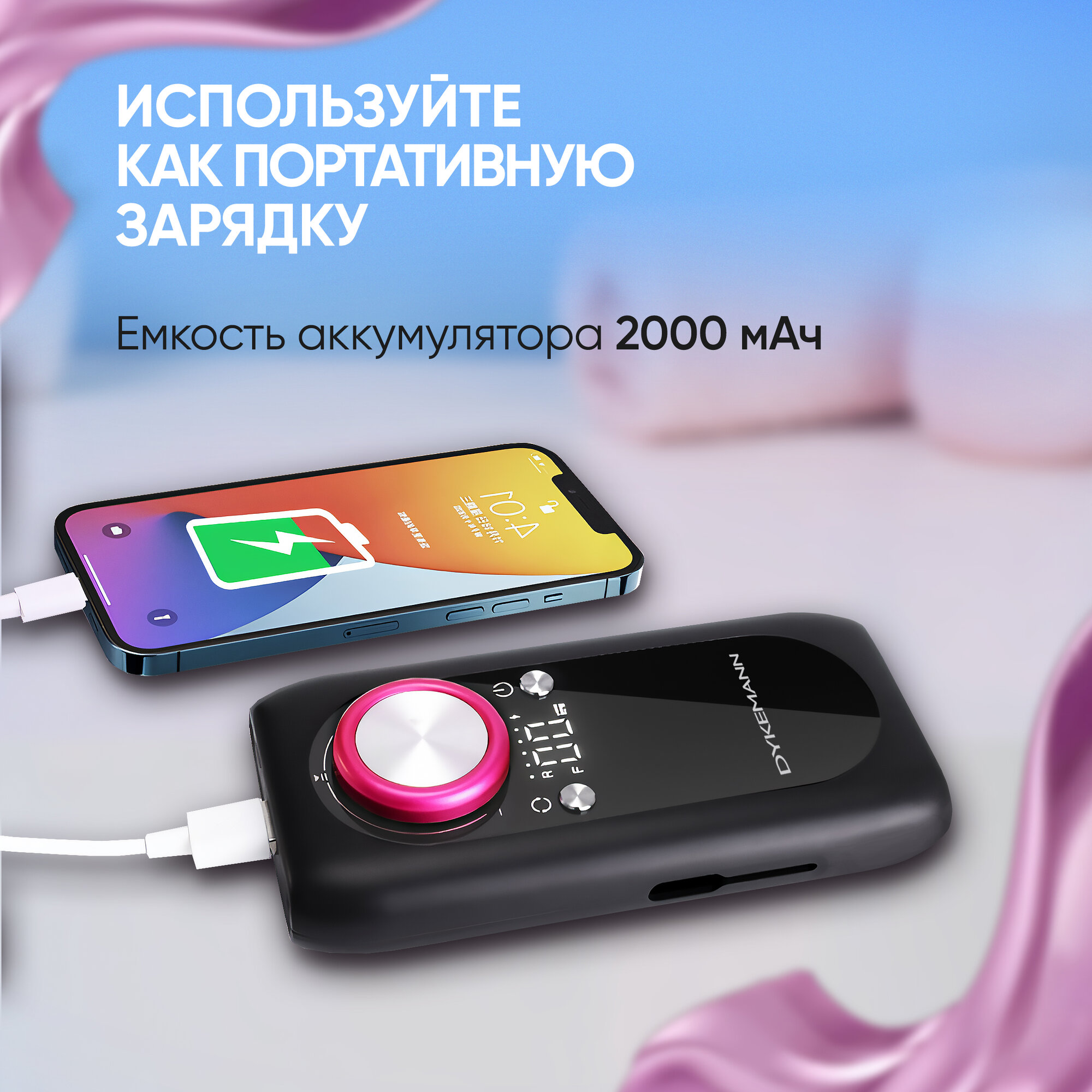 | Плюсы: | Повербанк, портативный, работает без шнура долго- хватает зарядки на несколько процедур |