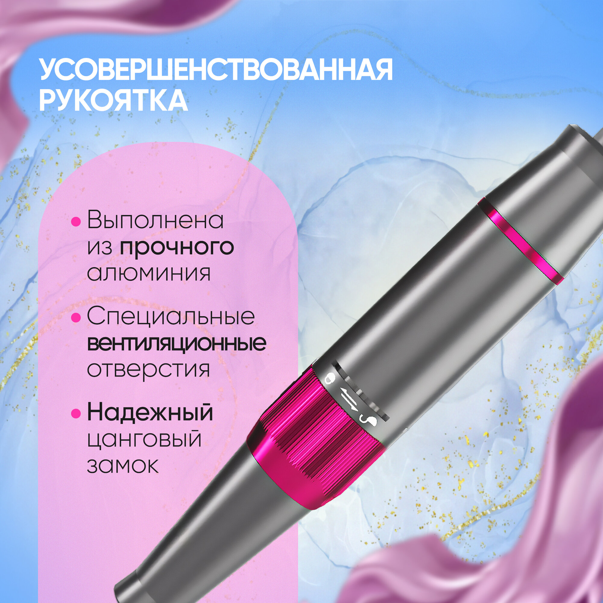 Аппарат компактный, удобный, ручка легкая, в руке удобно держать, ничего не скользит. Есть функция реверс и форвард, управление легкое, кнопкой, кнопка которая крутится настраиваешь необходимые обороты. Легко). В комплекте подробная инструкция на русском языке. Провод длинный, аппарат легкий,можно даже его брать с собой на выездной маникюр, к примеру. Покупкой довольна |