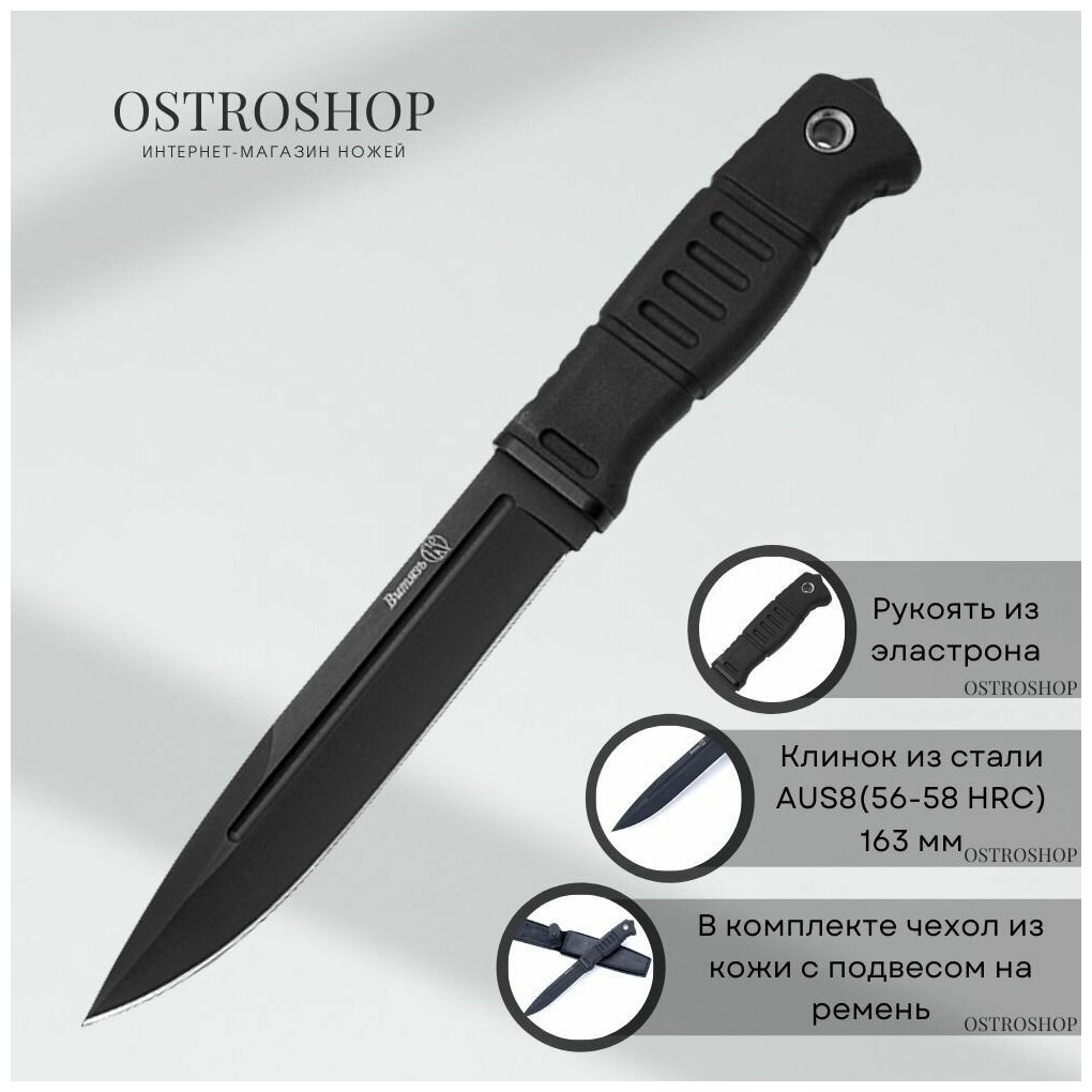 Купить Нож "Витязь" (AUS-8, черный, эластрон)