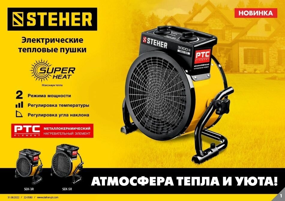 СохранитьЭлектрическая тепловая пушка STEHER, 3 кВт, МКН SEK-5R интересное: