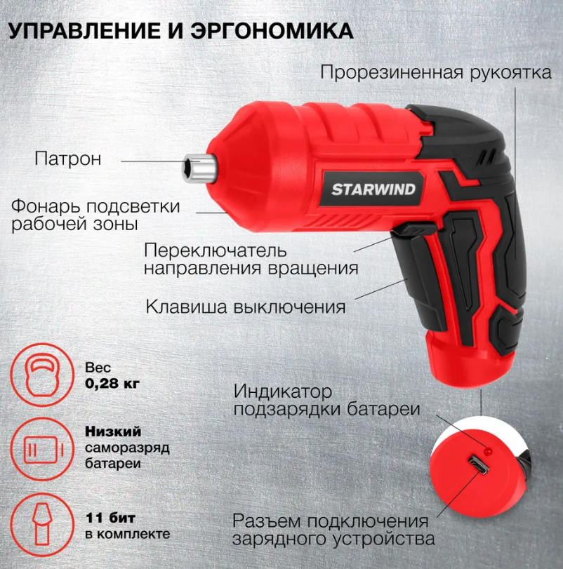 Отвертка аккум. Starwind SCS-6-4-1 аккум. патрон:держатель бит 1/4" (KWSD08) интересное: