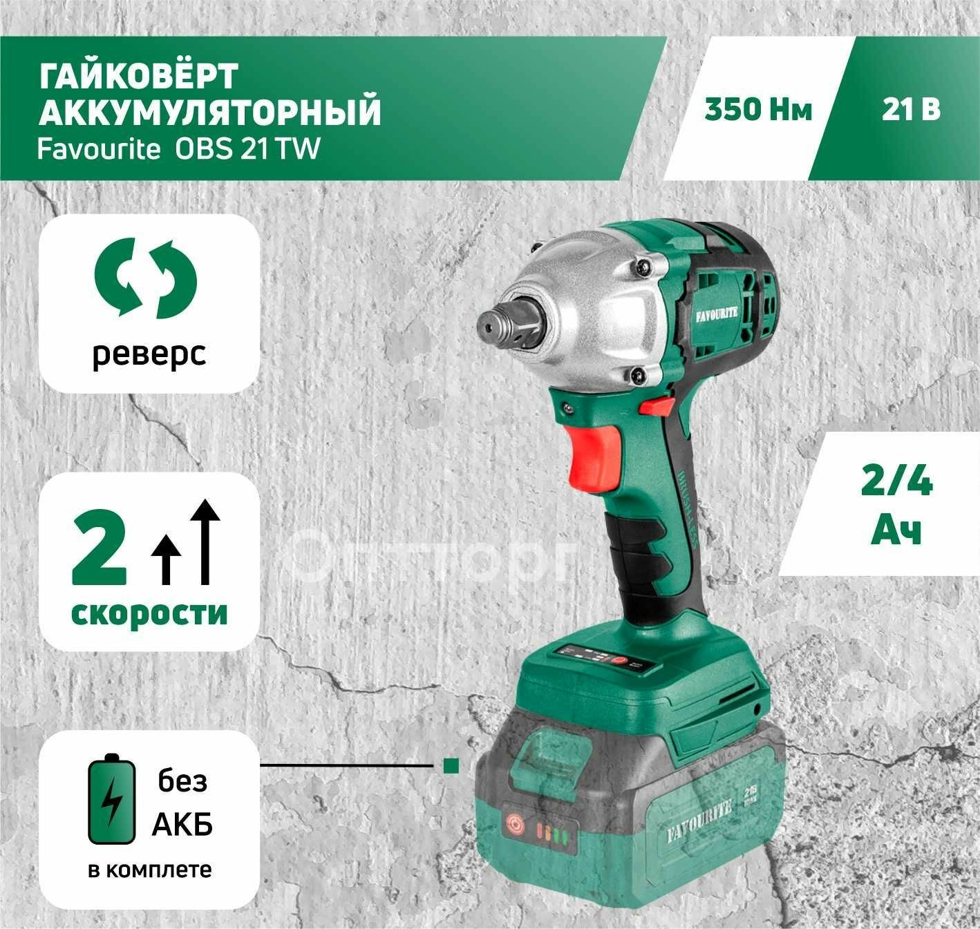 Купить Гайковерт аккумуляторный 21 В, 2/4 Ач, бесщеточный двигатель FAVOURITE OBS 21 TW (без АКБ и З/У)