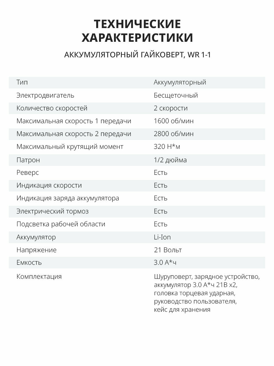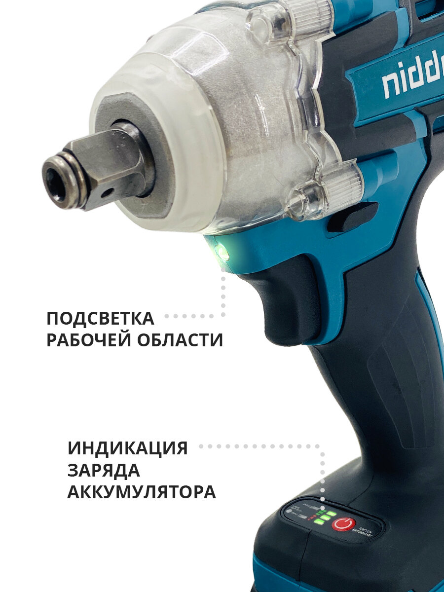 Бесщеточный аккумуляторный гайковерт NIDDO WR 1-1 21В 2х3.0Ah интересное: