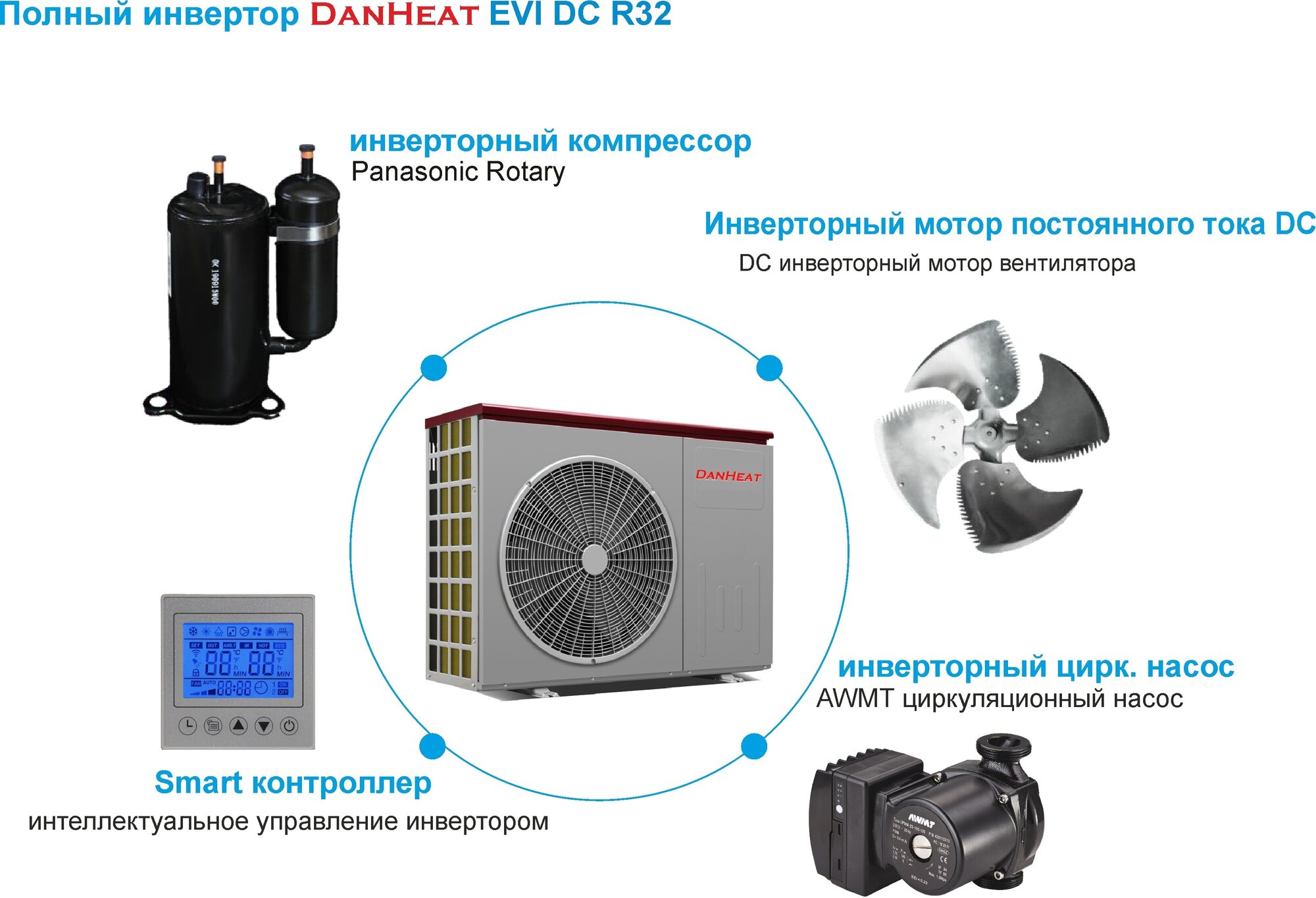 Тепловой насос DanHeat EVI DC R32 Моноблок 12,6 кВт (для дома) интересное: