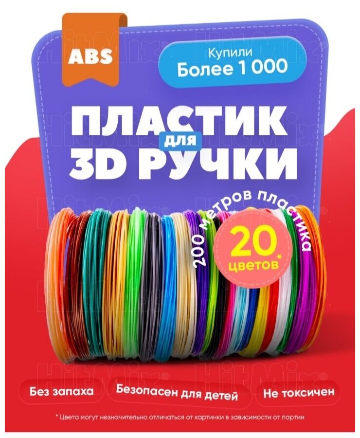 Купить Пластик для 3D ручки / ABS / АБС / 20 цветов по 10 метров / пластик для 3д ручки