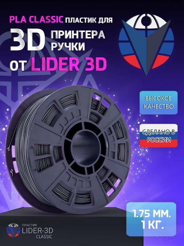 Купить PLA пластик LIDER-3D Classic для 3D принтера 1.75 мм, Чёрный, 1 кг