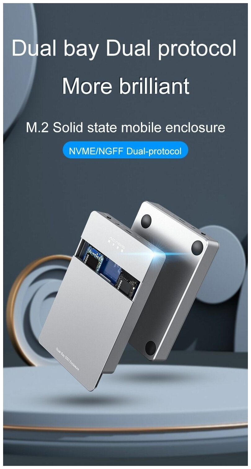 Док-станция Acasis Dual-Bay M.2 SSD NVME+NFGG Enclosure for M Key B+M Key Space Grey (M17) интересное: