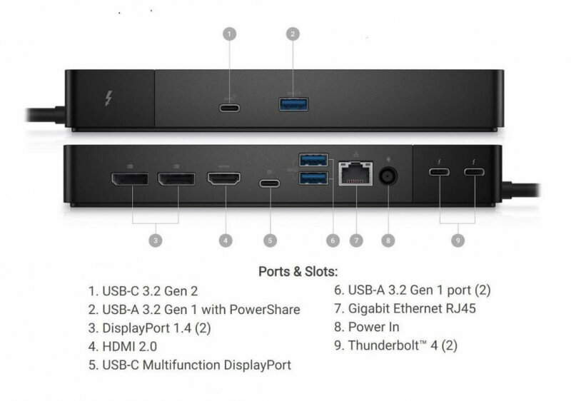 -HDMI версии 2.0, а не 2.1 -Перед покупкой лучше прочитать инструкцию, она очень внятная - там есть схемы подключения нескольких мониторов и пропускная способность в разных разрешениях -USB на передней панели не поддерживают UASP (т.е. подключать жесткий диск туда не производительно) -кнопка на корпусе бесполезна для ноутбуков не-DELL -,ольшой адаптер питания |
