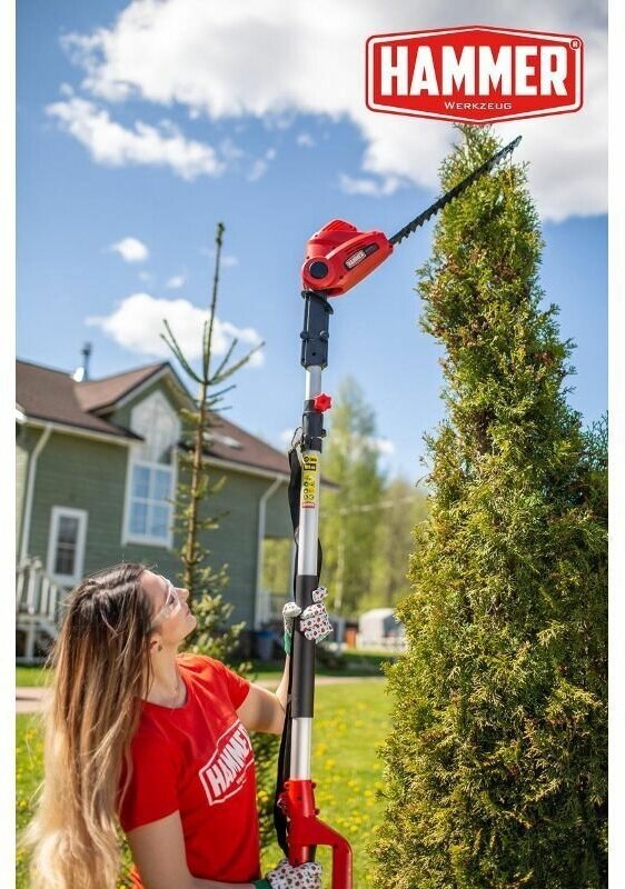 Подстригать кусты , отпиливать ветки не сложно но на уровне 1метр длинная ручка только помеха крайне нужна короткая сменная ручка |
