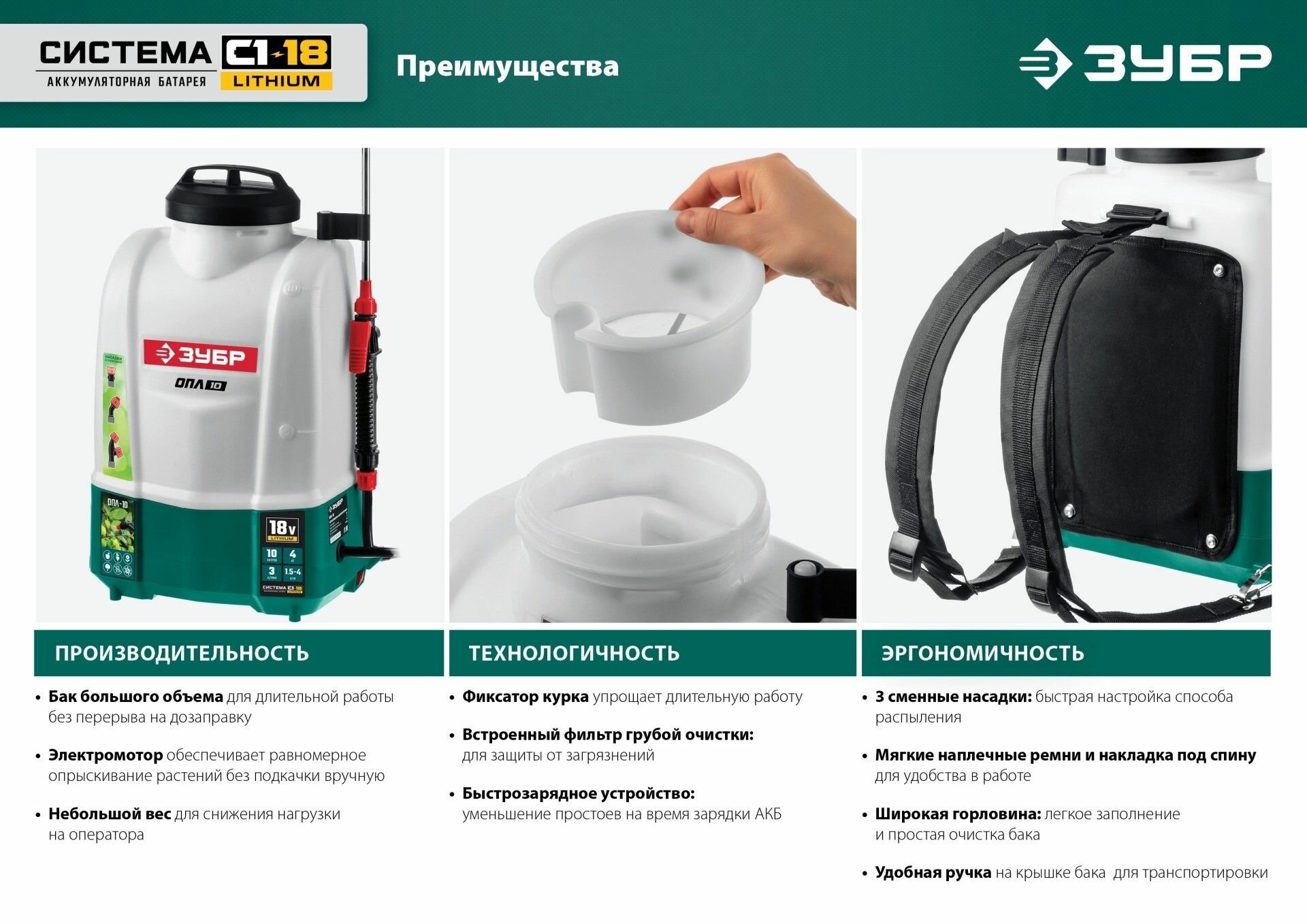 Аккумуляторный опрыскиватель ЗУБР ОПС-12, 12 л
