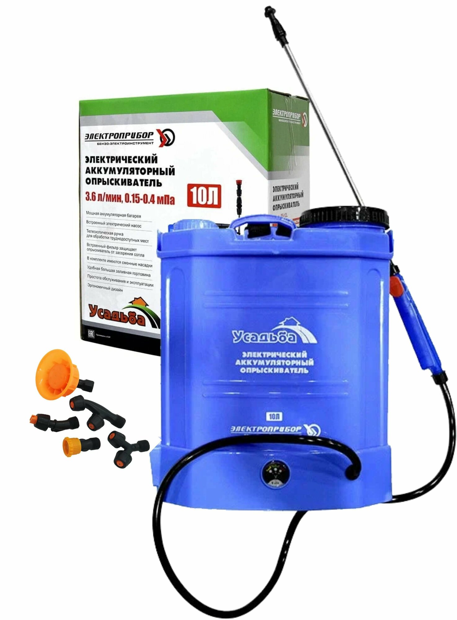 Купить Опрыскиватель садовый аккумуляторный 10 литров Электроприбор, ранцевый Электрический Распылитель Усадьба