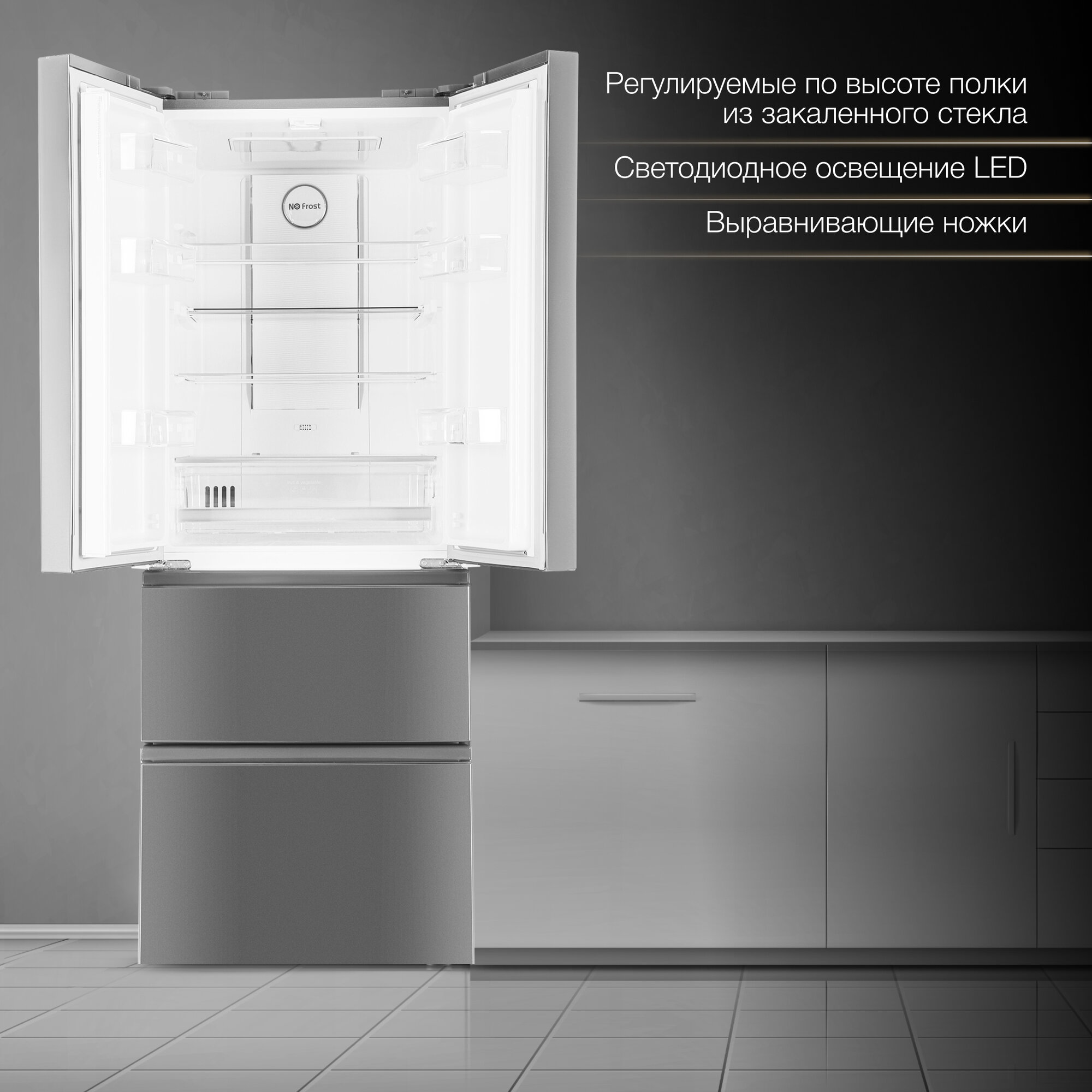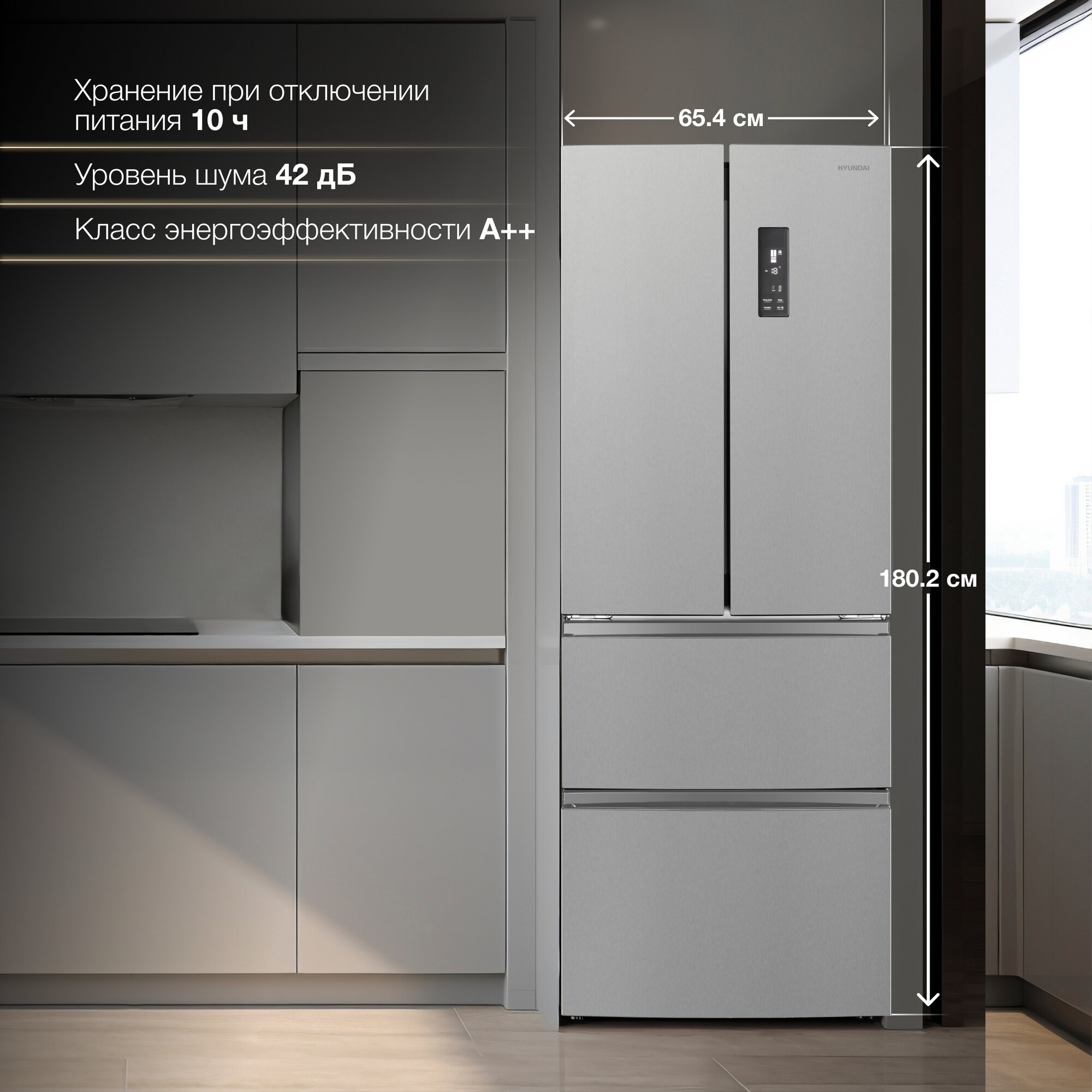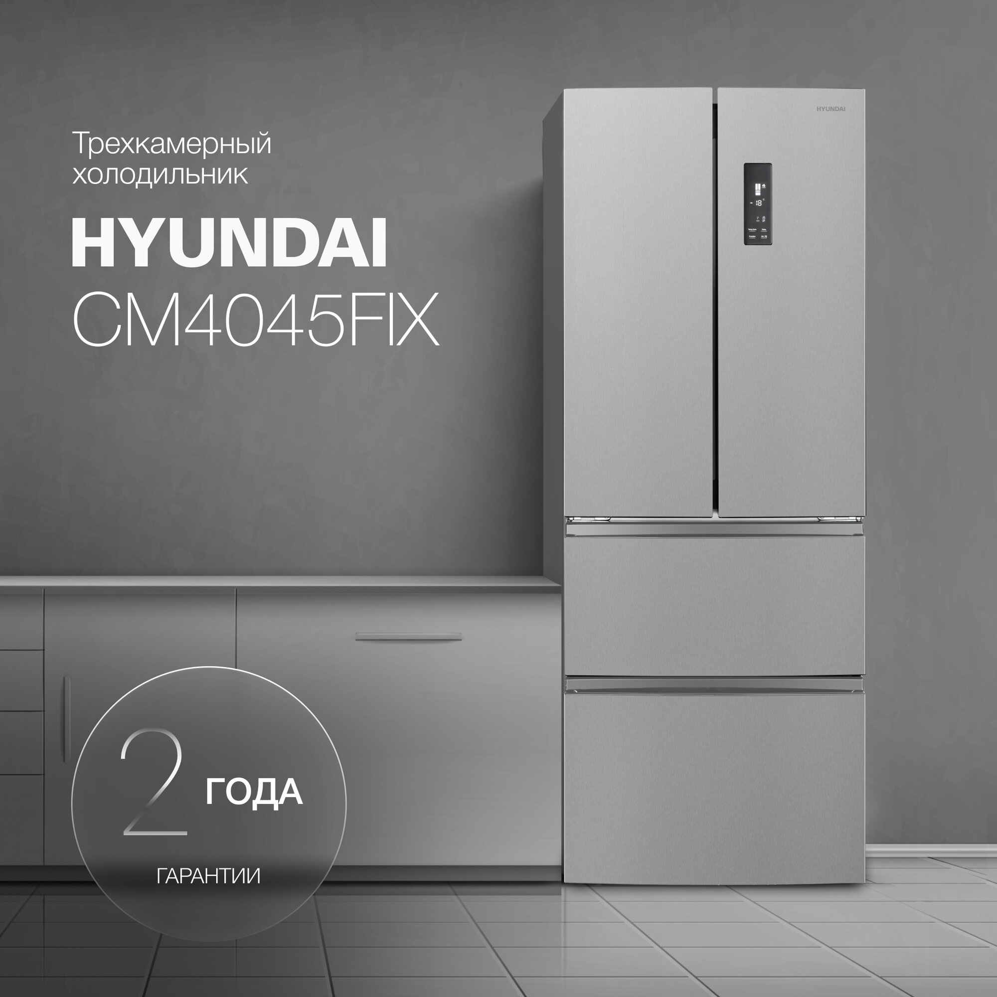 Холодильник трехкамерный Hyundai CM4045FIX Total No Frost, French Door, нержавеющая сталь