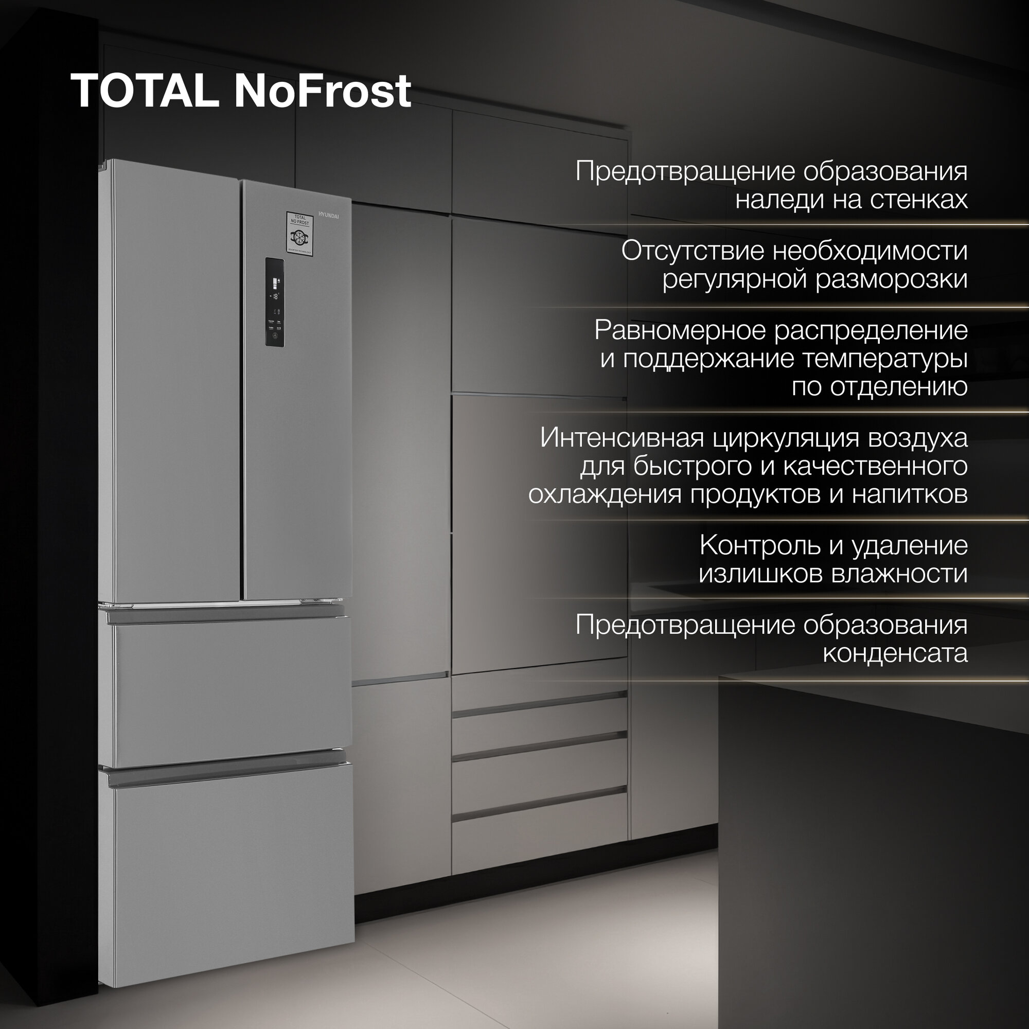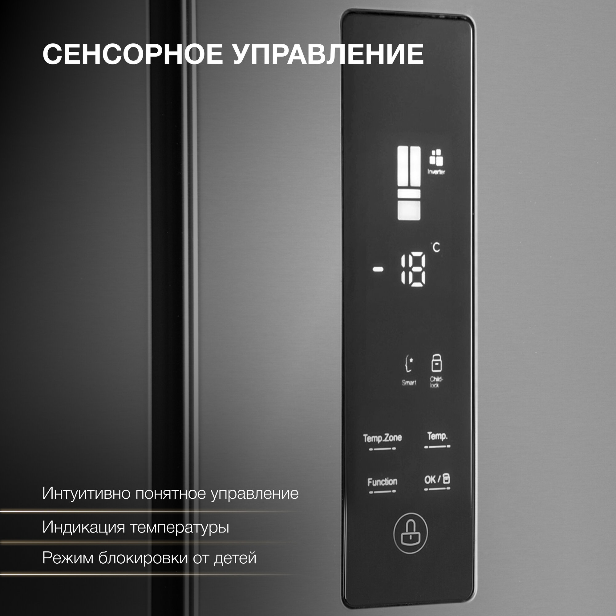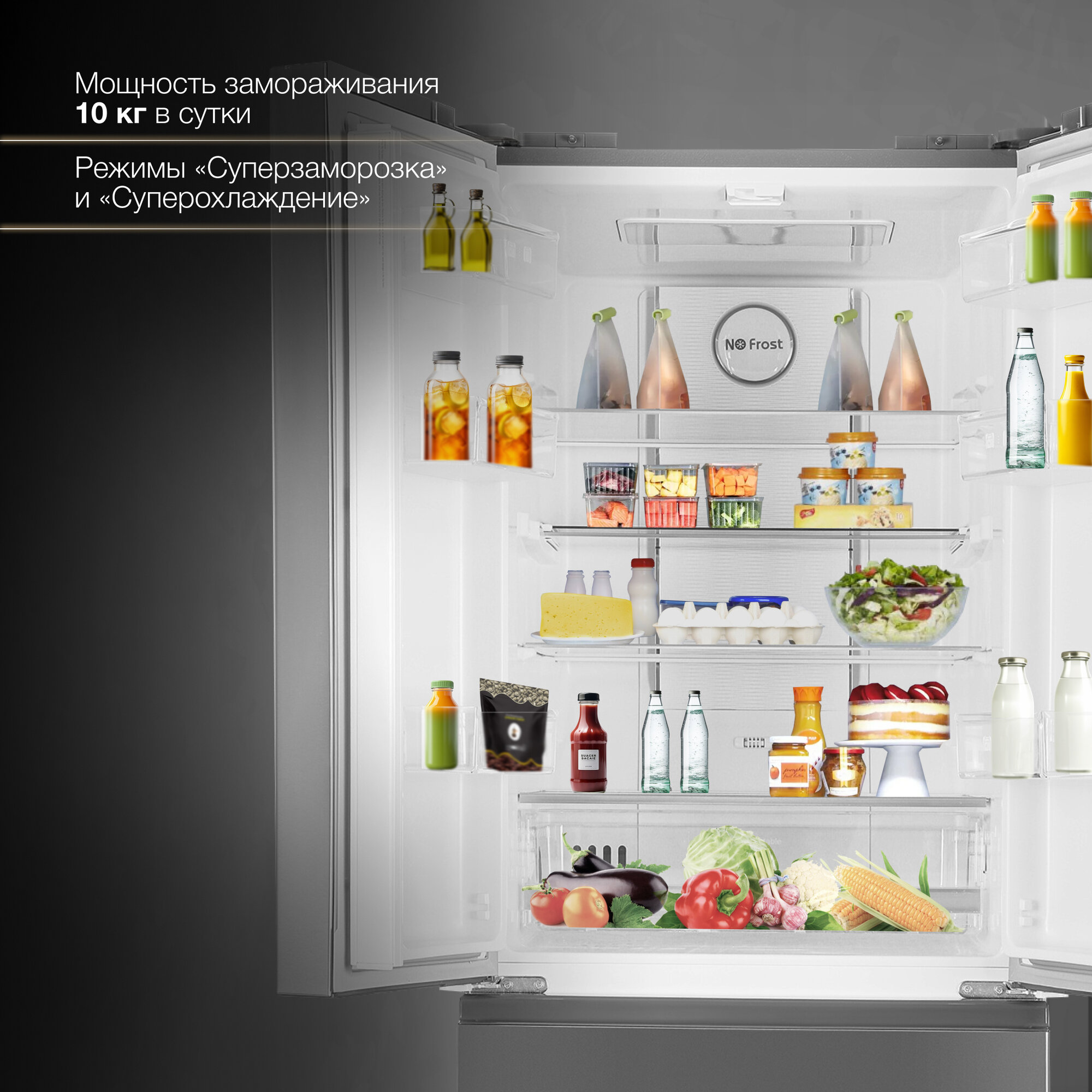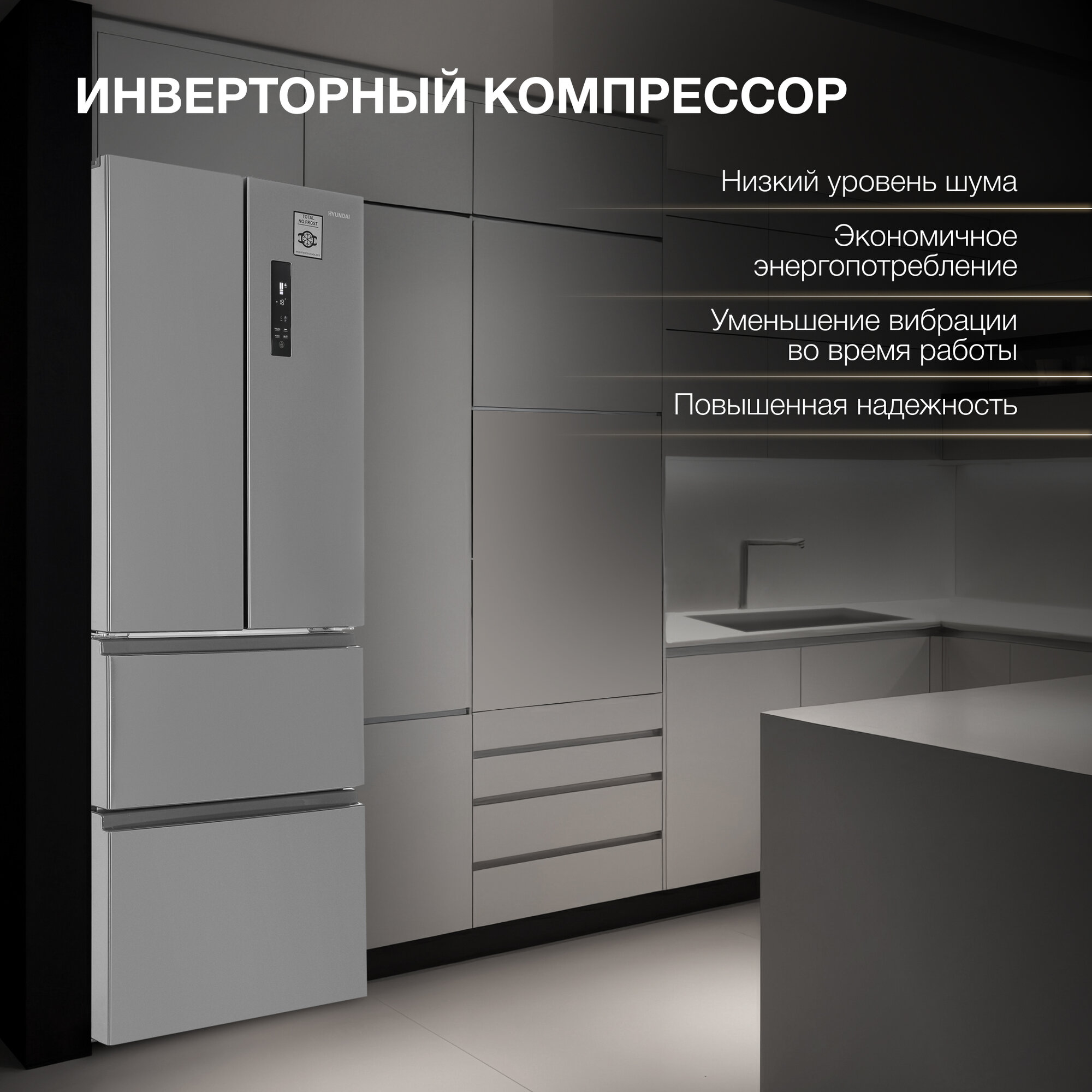 Холодильник трехкамерный Hyundai CM4045FIX Total No Frost, French Door, нержавеющая сталь