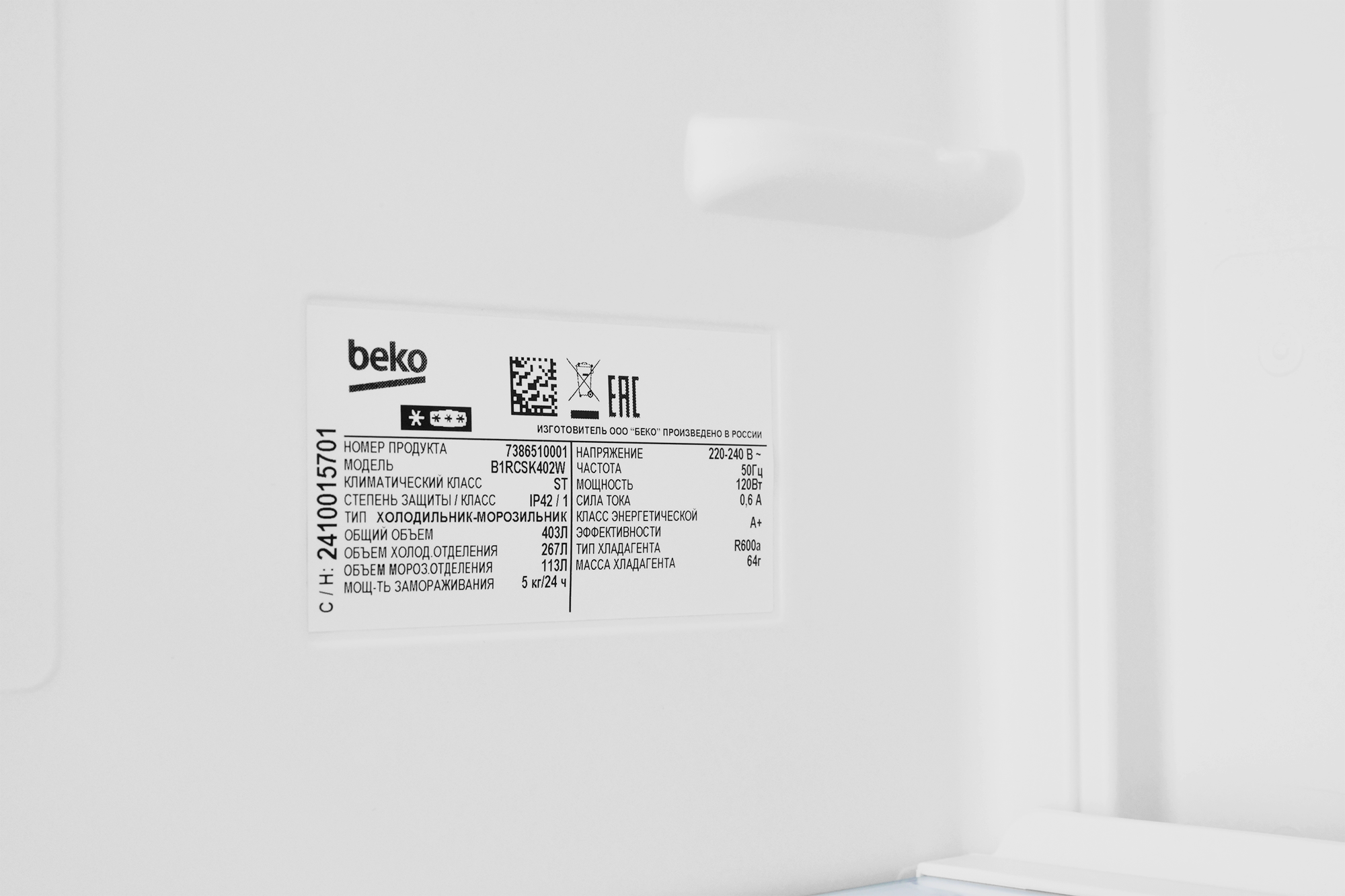 Холодильник Beko B1RCSK402W интересное: