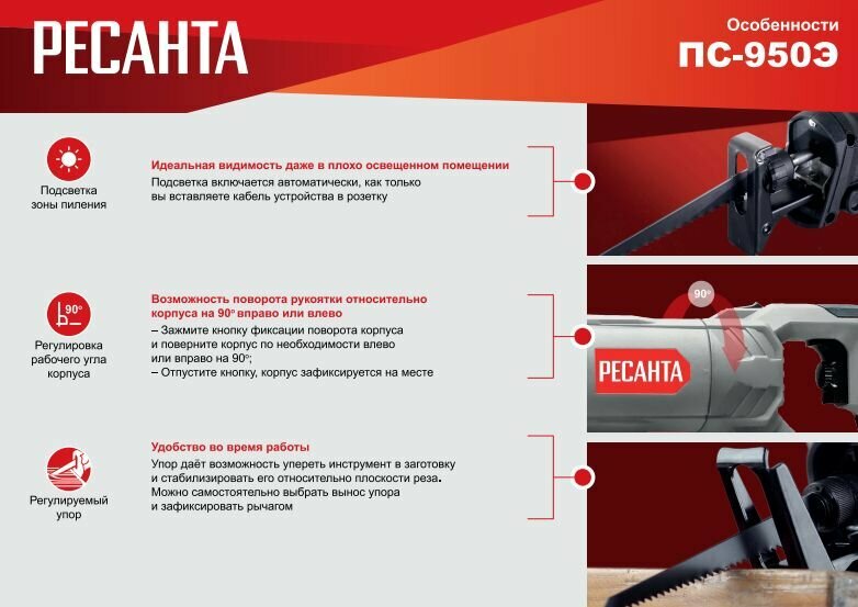 Сабельная пила Ресанта ПС-950Э (75/25/1) интересное: