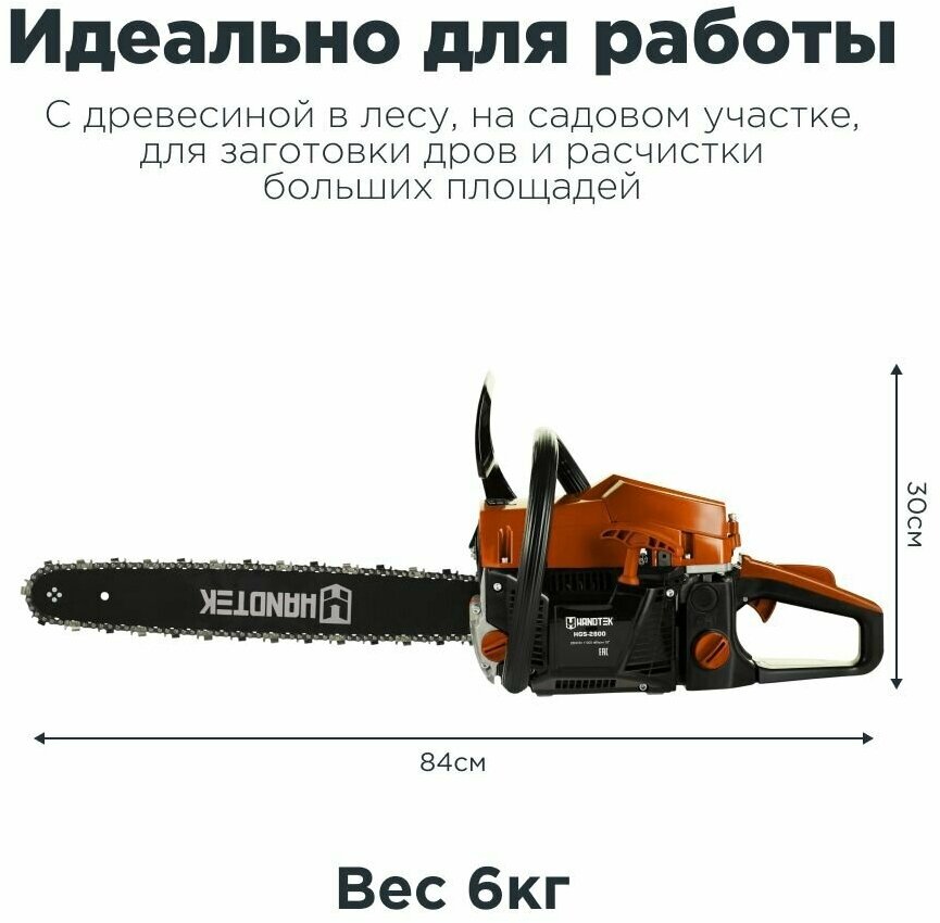 Бензопила цепная пила Handtek HGS-2800 оранжевая, 2800 Вт 3.81 л.с, 11000 об/мин, 72 звена/ двухтактный двигатель, шина 46см, зубчатый упор интересное: