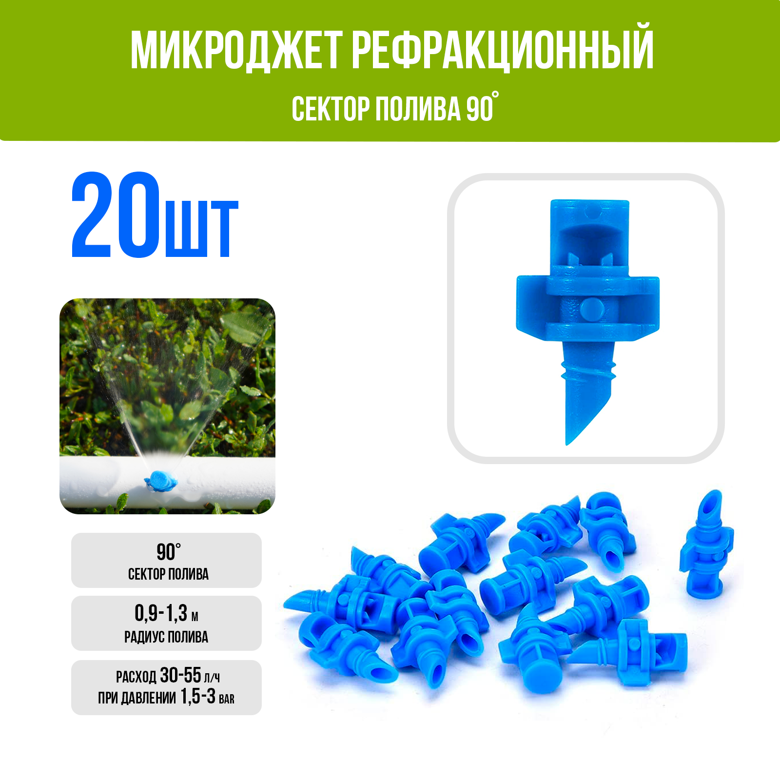 Микроджет рефракционный, сектор 90 градусов, синий, радиус 0,9-1,3м, расход 30-55л/ч при давлении 1,5-3 bar - 20 шт