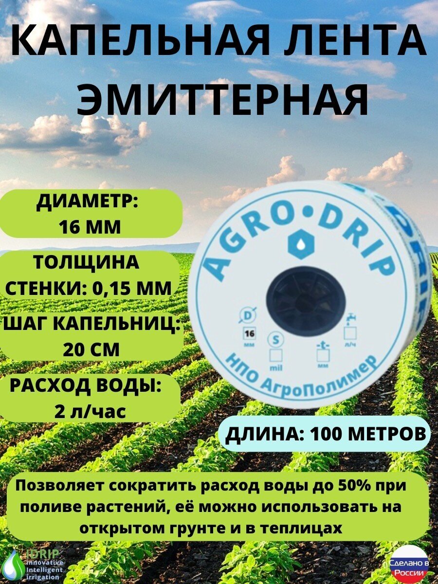 Лента для капельного полива эмиттерная 100 метров, диаметр 16 мм, толщина стенки 0,15 мм, шаг капельниц 20 см. Капельный полив 2 литра в час интересное: