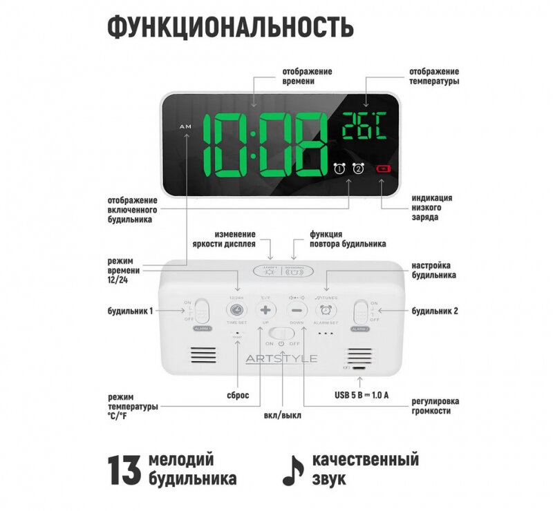 Часы электронные Artstyle CL-W80GR интересное: