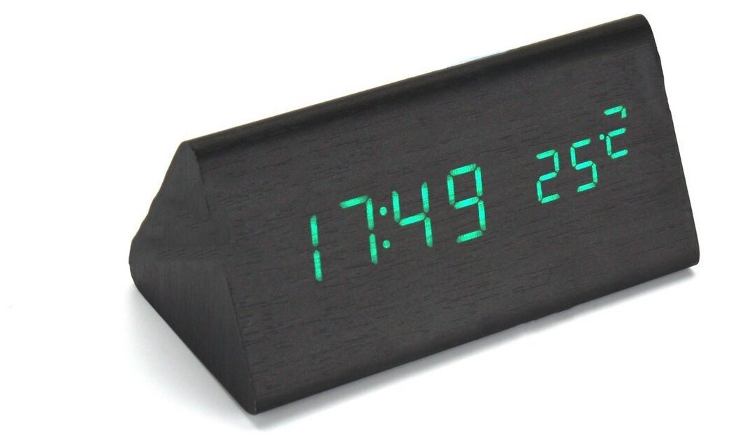 Купить Часы настольные цифровые /Будильник/Электронные часы/Часы под дерево (Черные с зелеными цифрами)