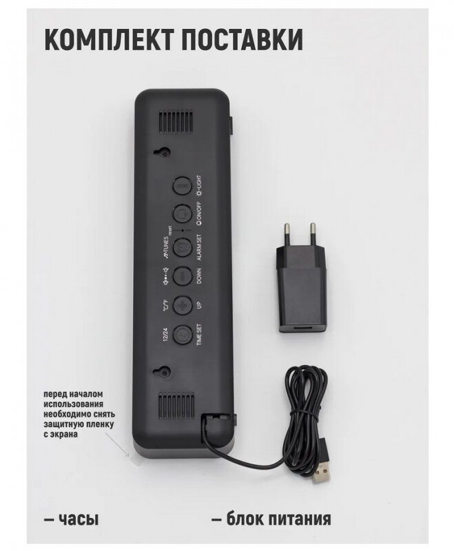 Часы настольные электронные с проекцией: будильник, термометр, календарь, 19.6 х 6.5 см