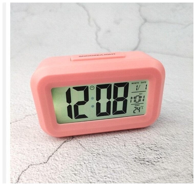 Светодиодный будильник, настольные часы , подсветка, будильник, календарь, настольные часы DT-1861. Цвет корпуса Коралловый. интересное:
