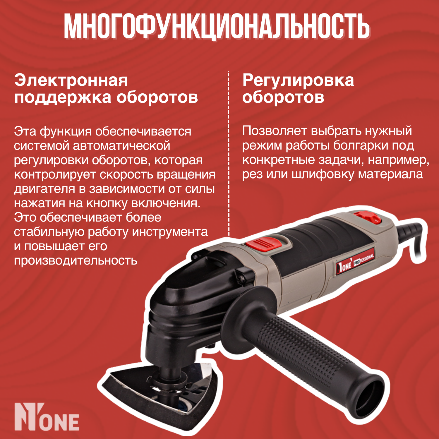 Многофункциональный инструмент (реноватор) NUMBER ONE FG350-2 в кейсе, 350Вт, 10000-20000кол/мин, 3 насадки. интересное:
