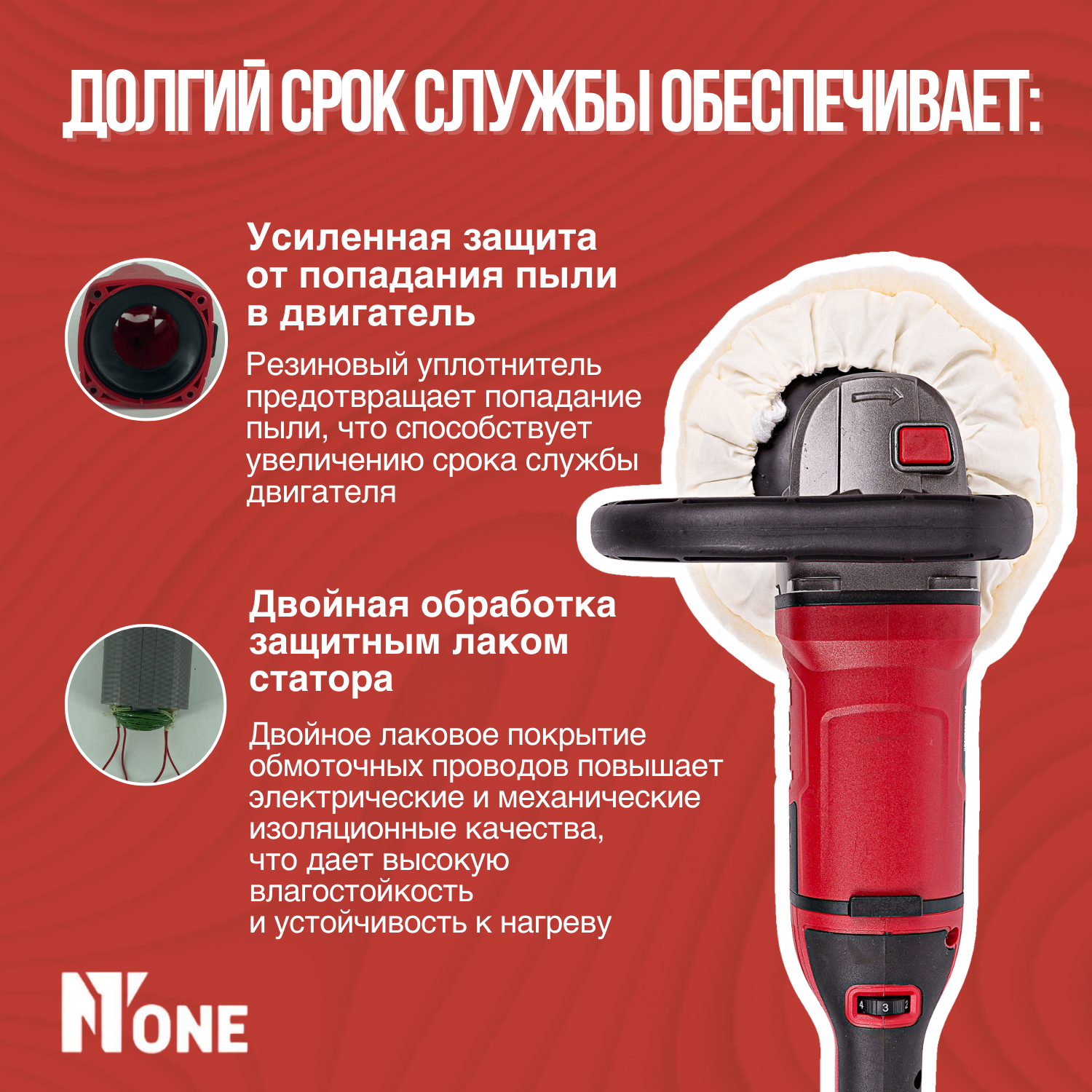 Шлифмашина полировальная NUMBER ONE AG1500/180-PRO 1500Вт, 400-3800 об/мин, констант. электр. интересное: