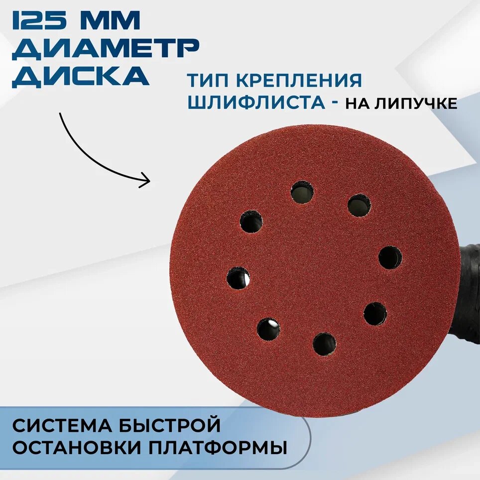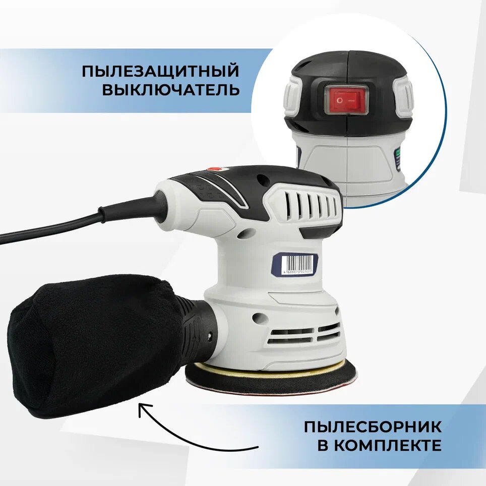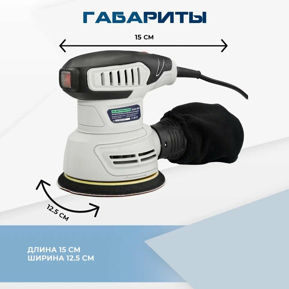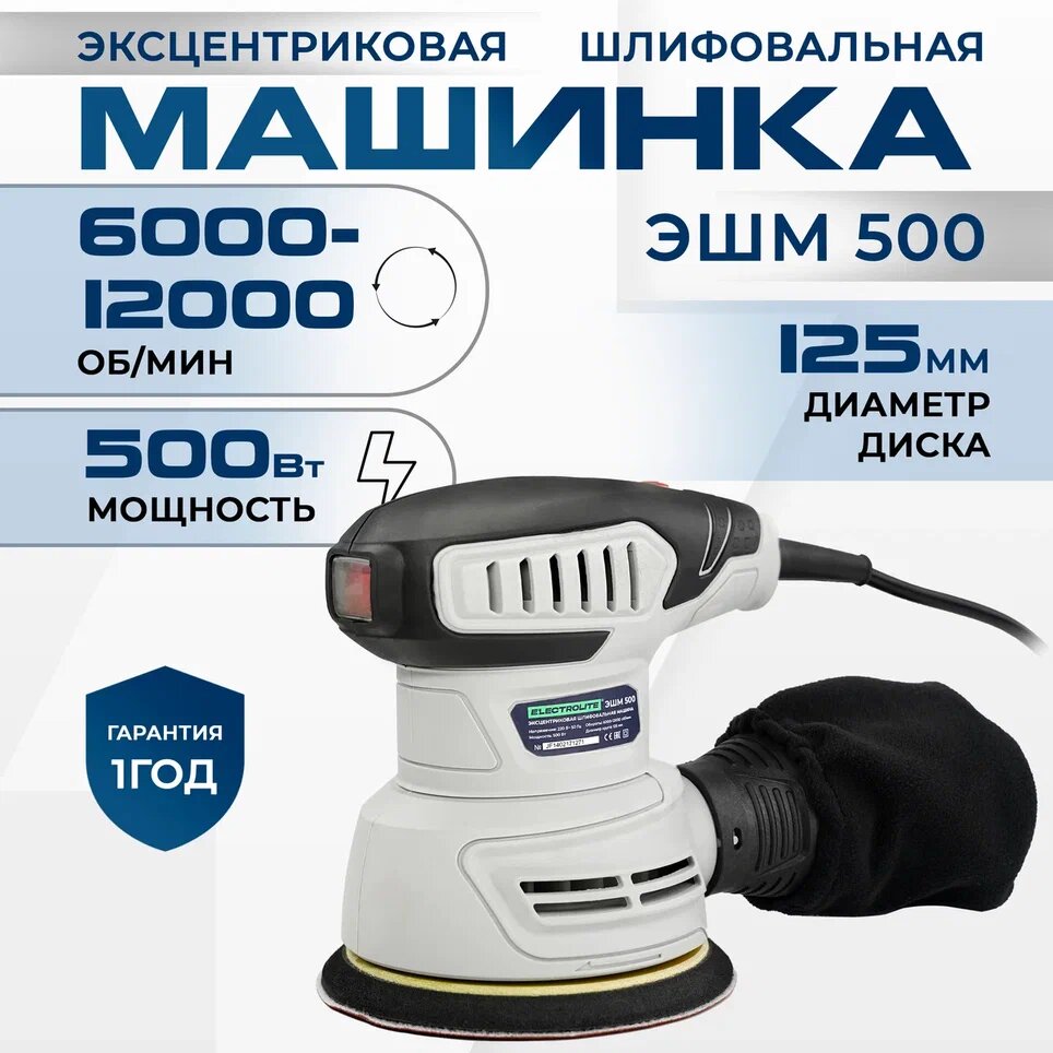 Шлифмашинка эксцентриковая / Шлифовальная машинка / Шлифовальная машинка по дереву / Electrolite ЭШМ 500 125 мм, 500 Вт, 6000-12000 об/мин