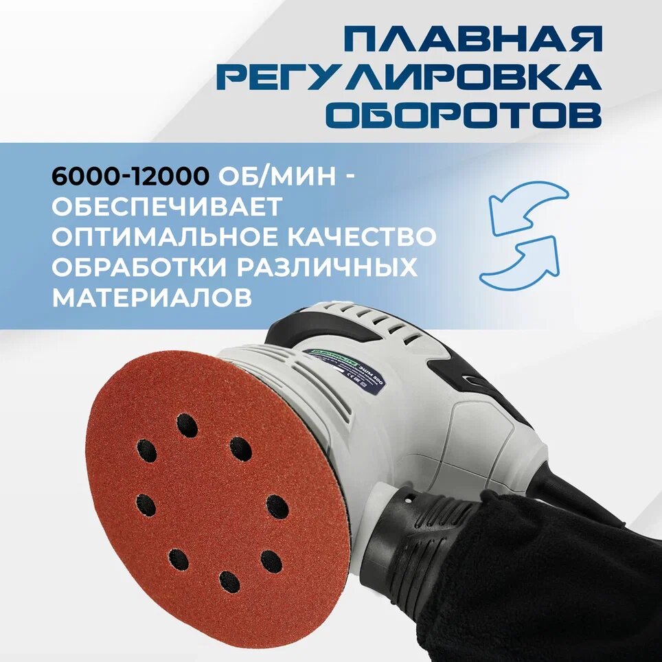 Шлифмашинка эксцентриковая / Шлифовальная машинка / Шлифовальная машинка по дереву / Electrolite ЭШМ 500 EL 125 мм, 500 Вт, 6000-12000 об/мин