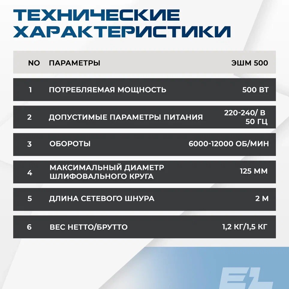 Шлифовальная машинка Electrolite ЭШМ 500 EL 125 мм, 500 Вт, 6000-12000 об/мин