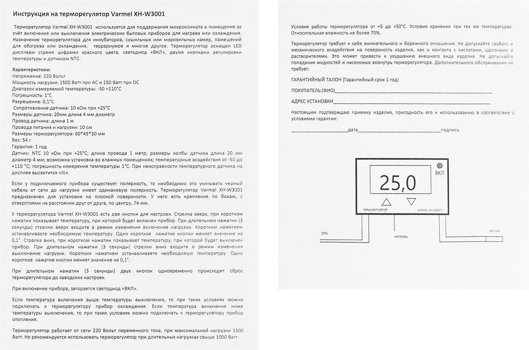 • Терморегулятор Varmel XH-W3001 электронный с датчиком 220В для инкубаторов, брудеров, морозильных/сушильных камер интересное: