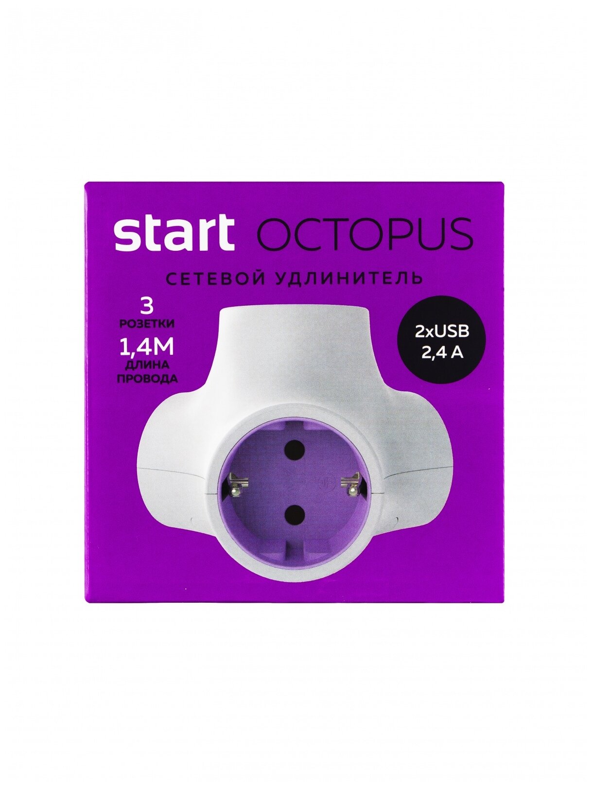 Удлинитель старт S 3x1-ZD 2USB Octopus (3 розетки, 1.4м, 16А, с заземлением) интересное: