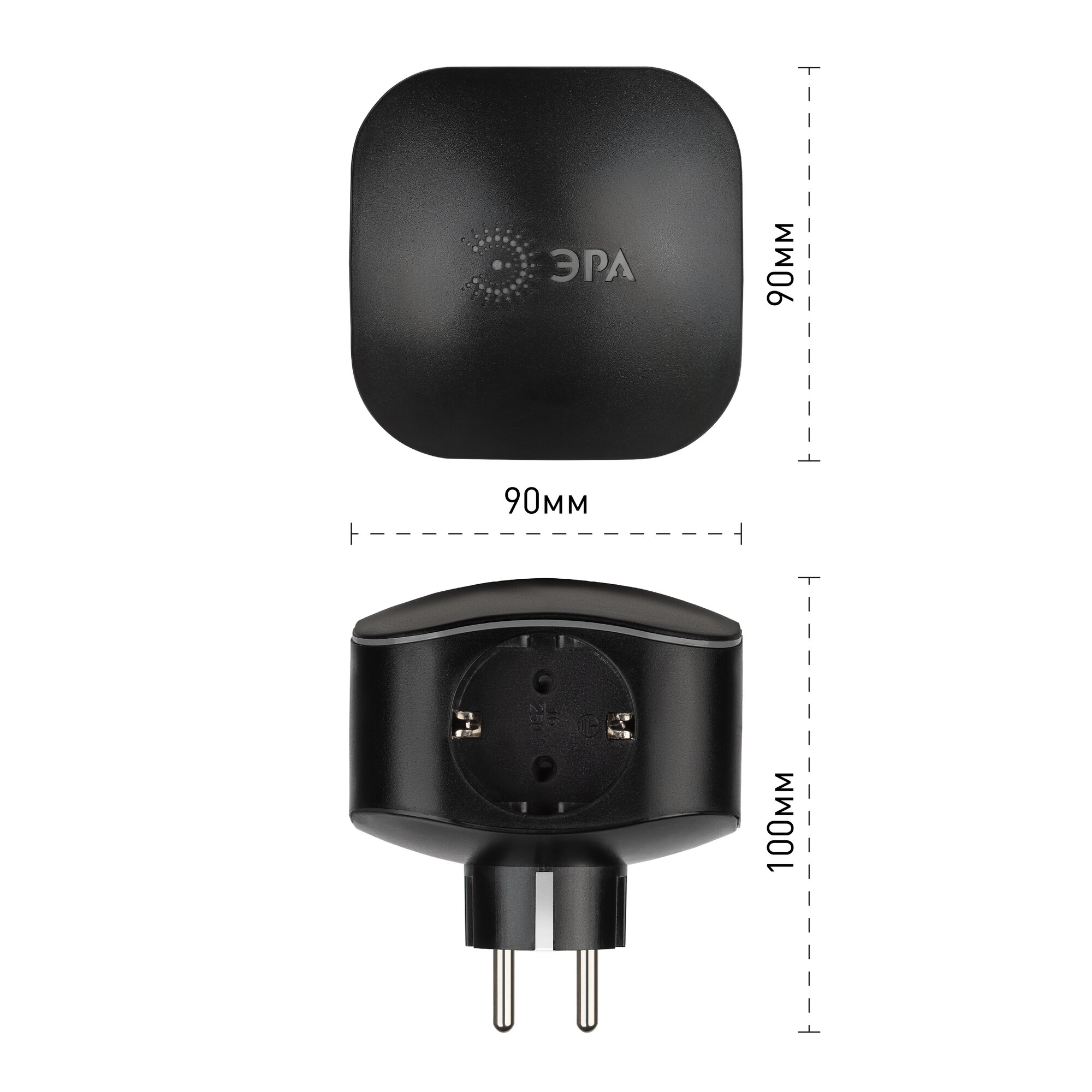 Тройник Эра "SP-4",черный, 4 разъема, негорючий поликарбонат, 16А/3680 Вт