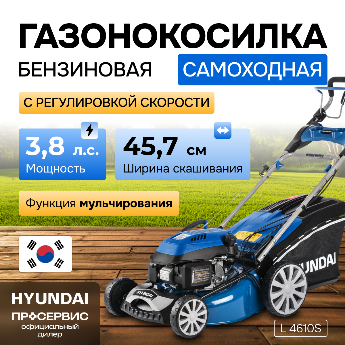 Газонокосилка роторная Hyundai L 4610S интересное: