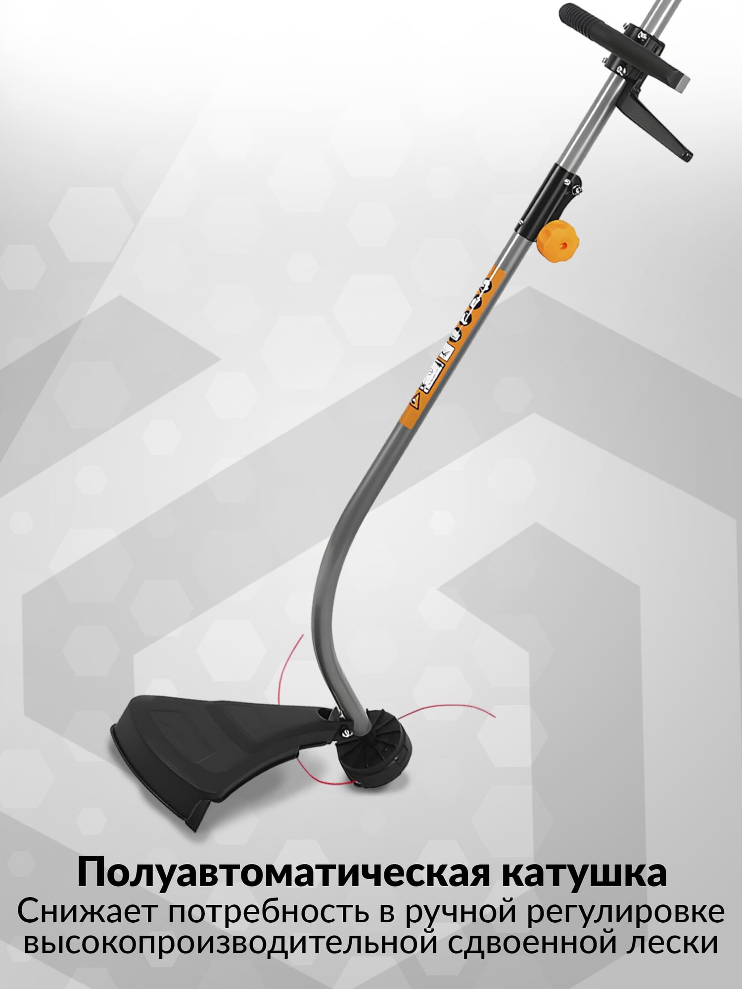 | Плюсы: | мощный триммер, верхнее расположение мотора(можно косить влажную траву) |